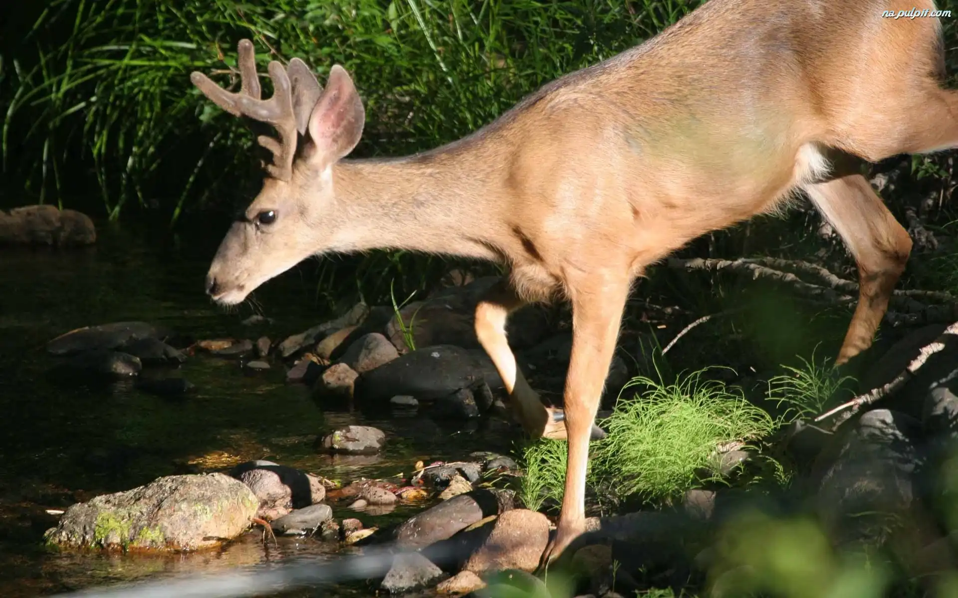 Dwa, Jelenie Rozgwiazda, Niebieskie, Kamienie łąka, Rzeka, Góry Góry, Polana, Wieczór, Jeleń Kamienie, Irlandia, Europa Rzeka, Skały Sarna, Kwiatki Woda, Głazy, Wodospad Drzewo, Jelonek, Powalone Rzeka, Kamienie Sarny, Trawa Sarenka, Śnieg Wybrzeże, Kamienie, Morze Wodospad, Góry, Rzeka
