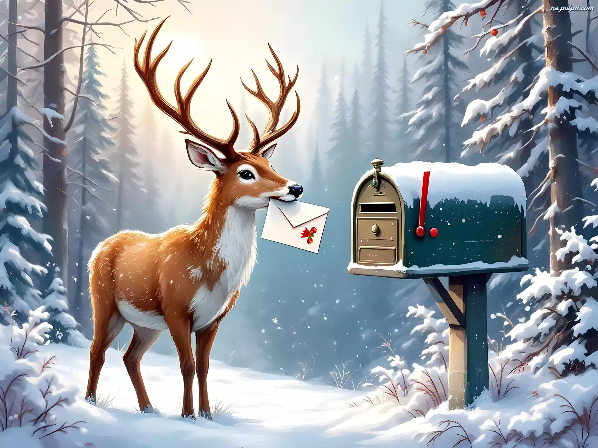 Skrzynka pocztowa, Zima, Jeleń, Las, List Na Pulpit