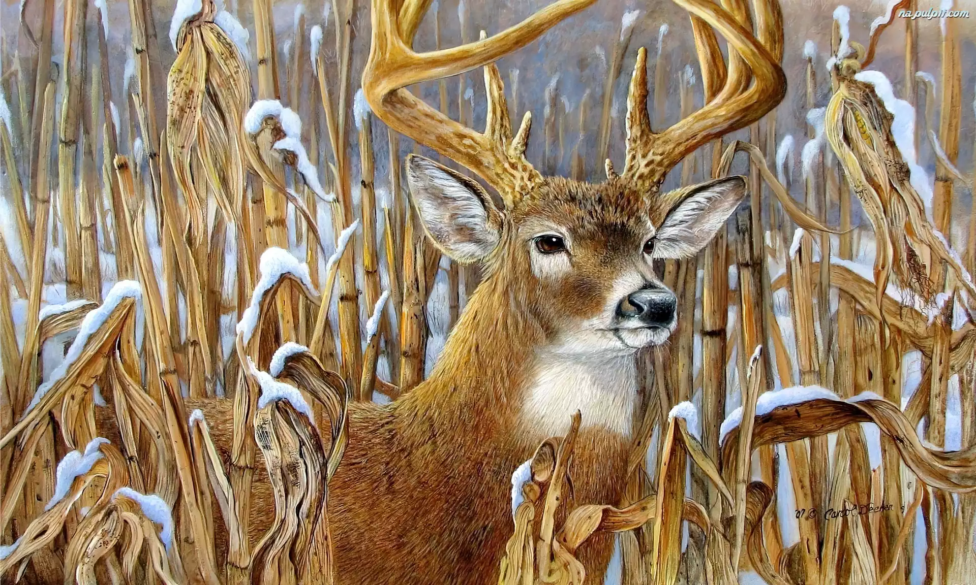 Śnieg, Uschłe, Jeleń, Trawy Na Pulpit