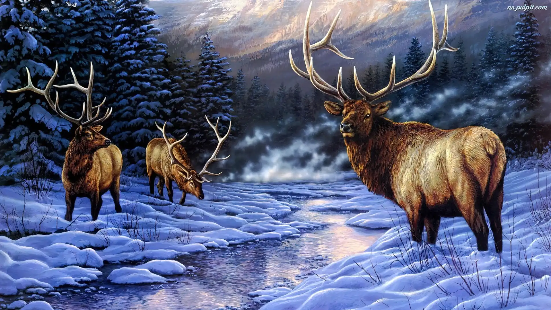 Świerki, Zima, Jelenie, Strumyk