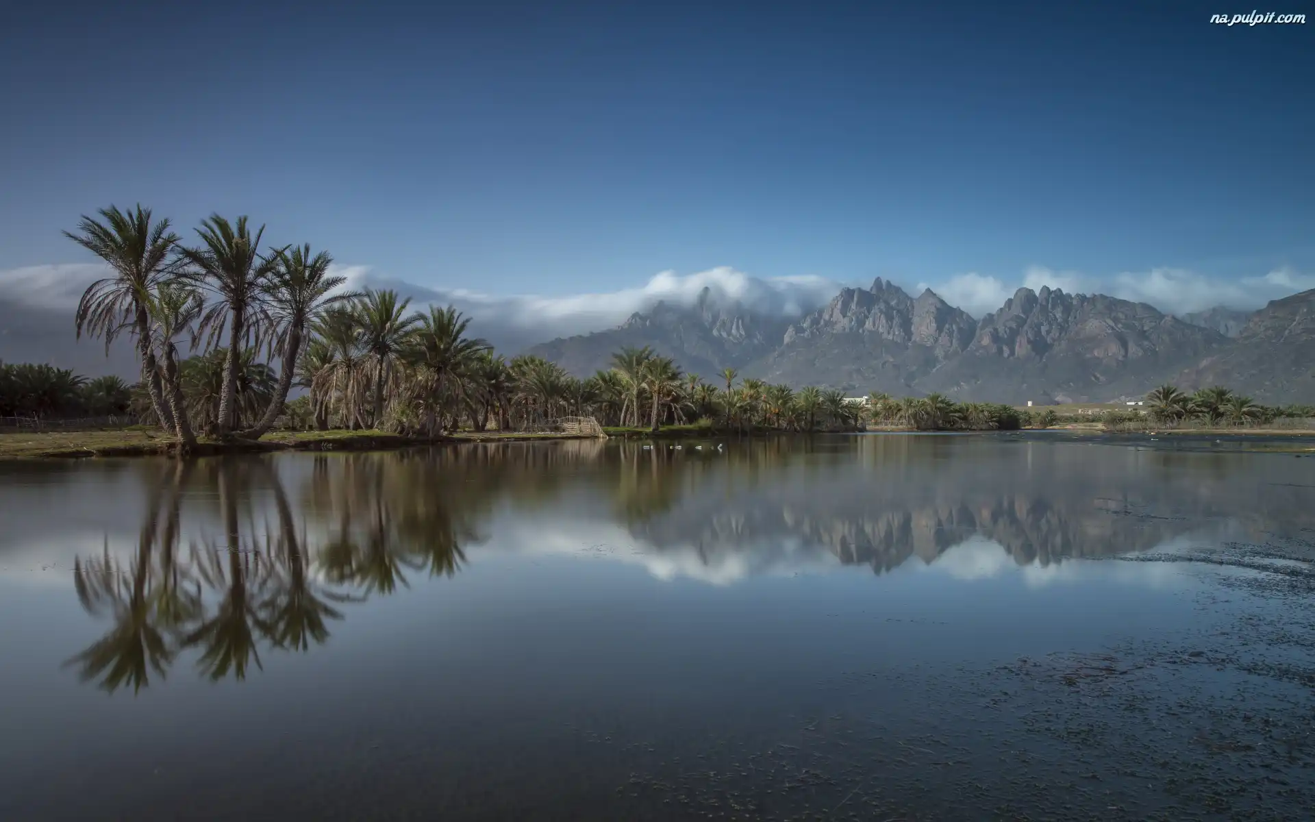 Jemen, Jezioro, Góry, Palmy Na Pulpit