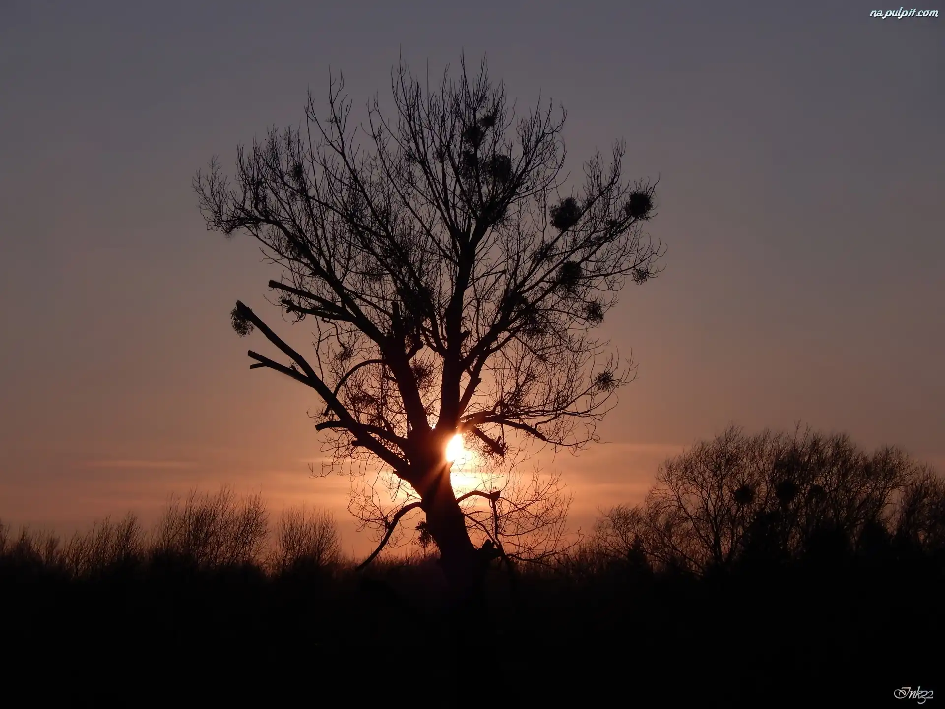 Jemioła, Słońca, Zachód, Drzewo