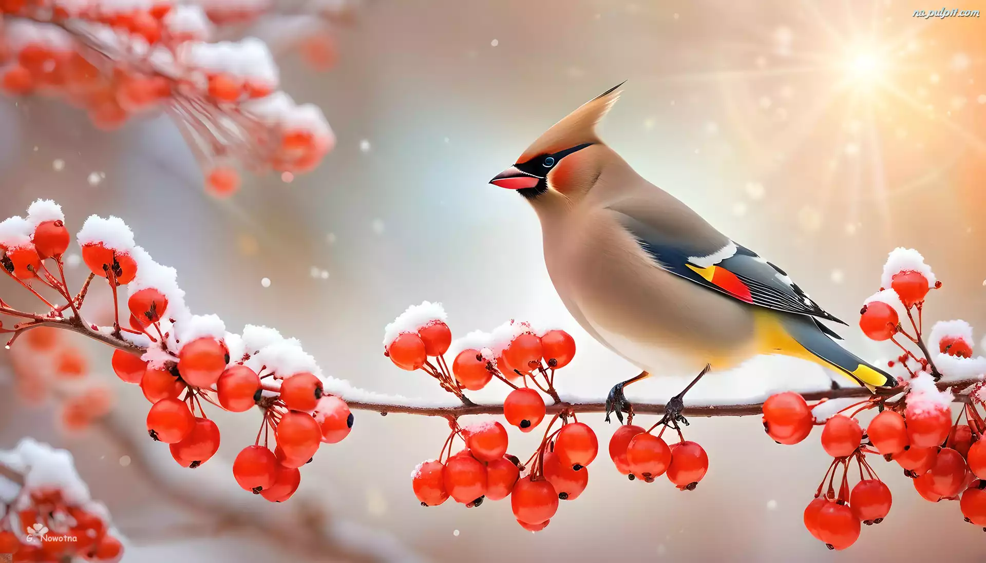 Owoce, Jemiołuszka, Ptak, Grafika, Czerwone Na Pulpit