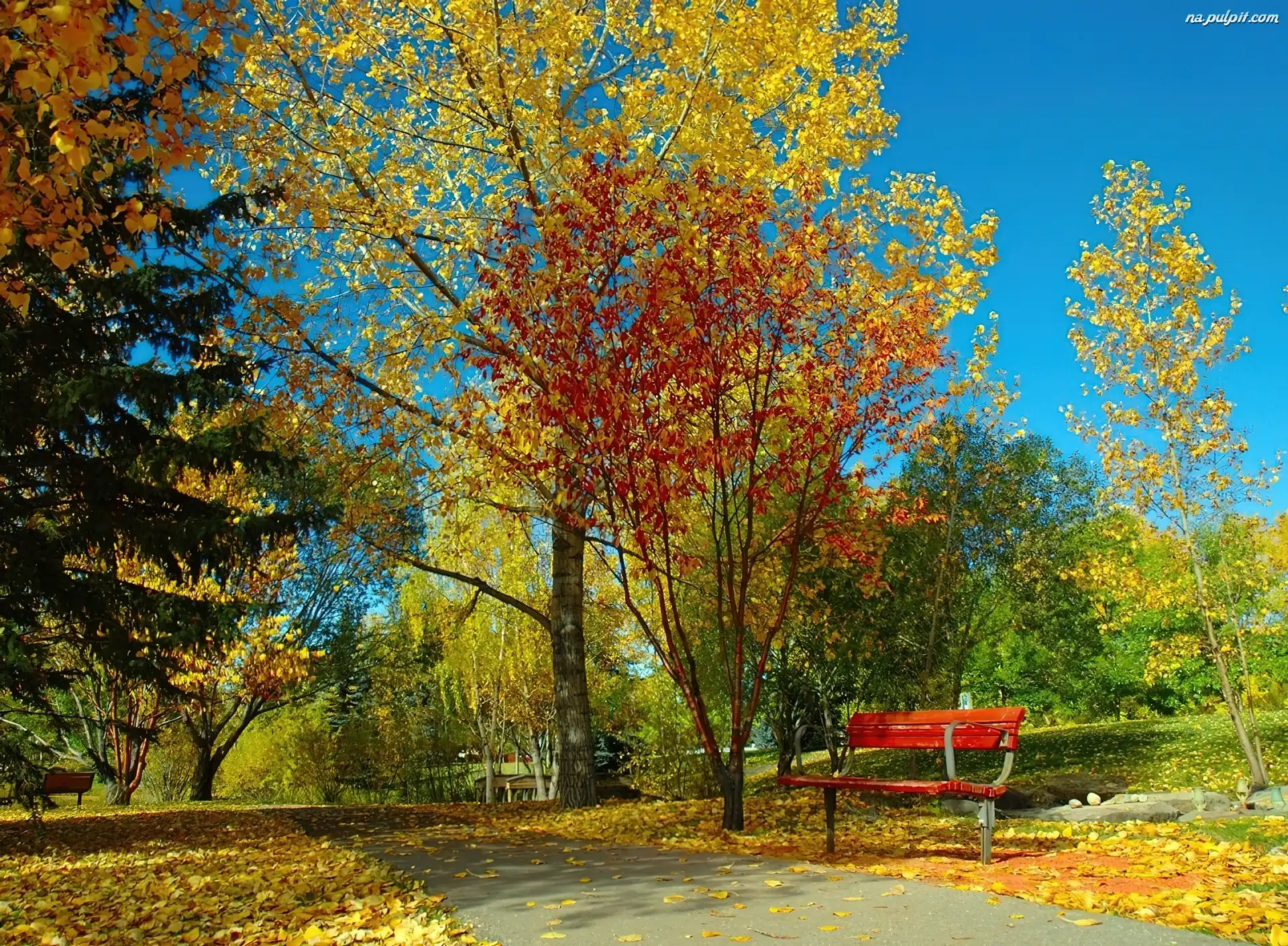 Jesień, Góra, Drzewa Drzewa, Jesień, Alejka Ławki, Drzewa, Park, Lampy Jesienią, Liście, Hortensji Znicze, Wzgórze, Krzyż Park, Posąg Zachód Śłońca, Góra, Las, Drzewo, Morze Liść, Uschły, Jesienny Pole Golfowe, Drzewo Plaża, Drzewa Drzewo, Gruby, Pień Drzew, Żółte, Zielono, Liście Liście, Drzewo, Różowe Liście, Kałuża