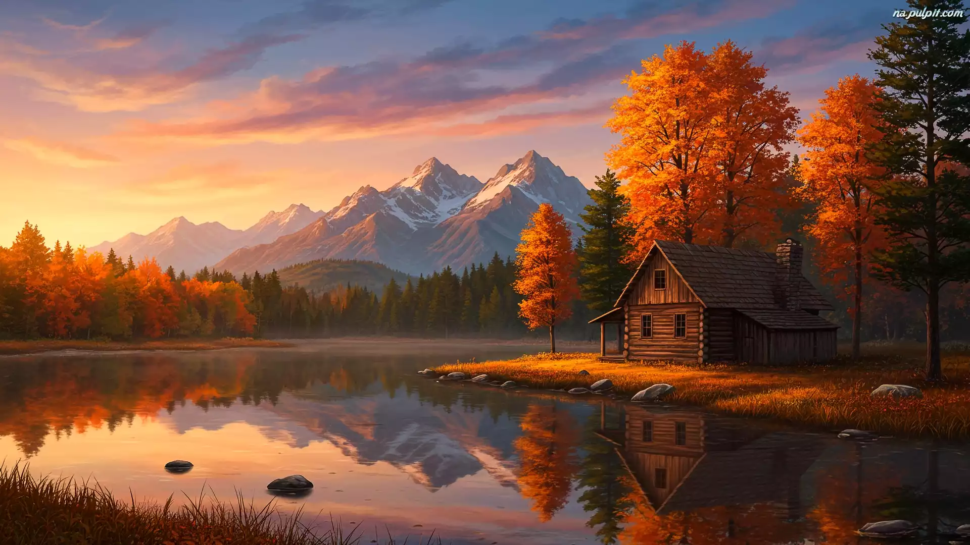 Rzeka, Jesień, Dom, Góry, Drzewa Na Pulpit