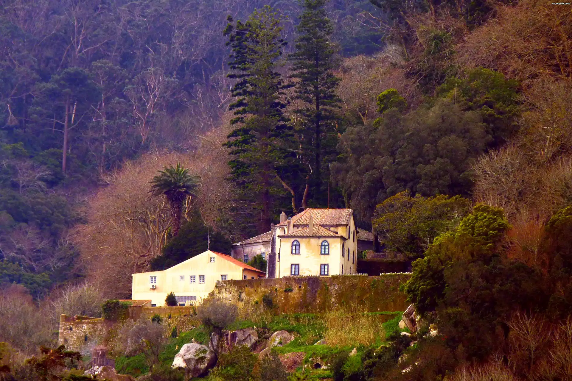 Jesień, Wzgórza, Dom, Drzewa