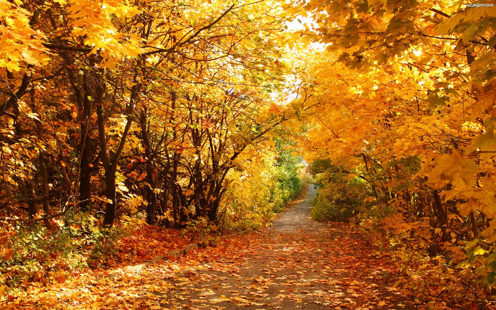 Jesień, Drzewa, Droga, Liście Na Pulpit