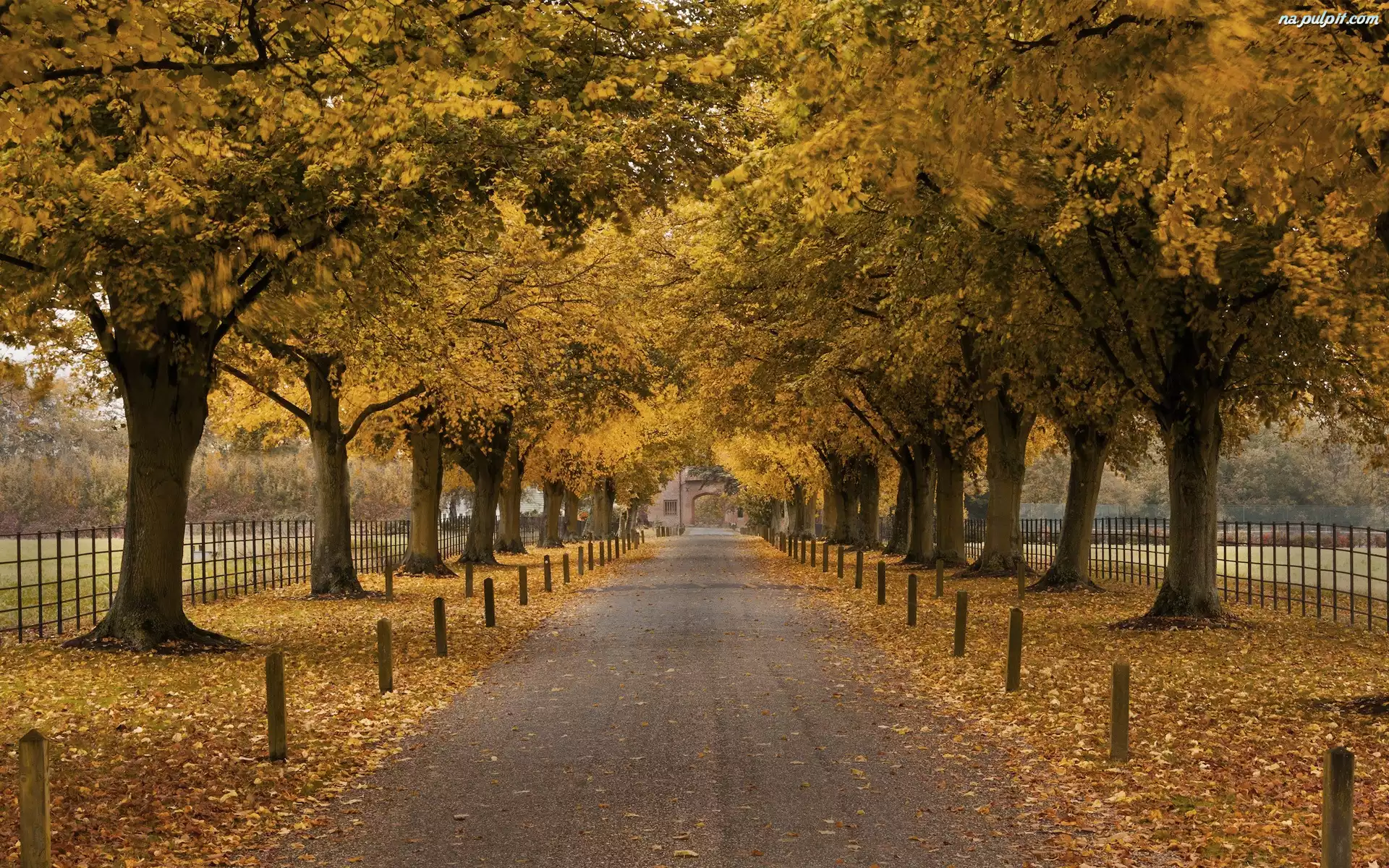 Jesień, Drzewa, Droga, Liście Na Pulpit