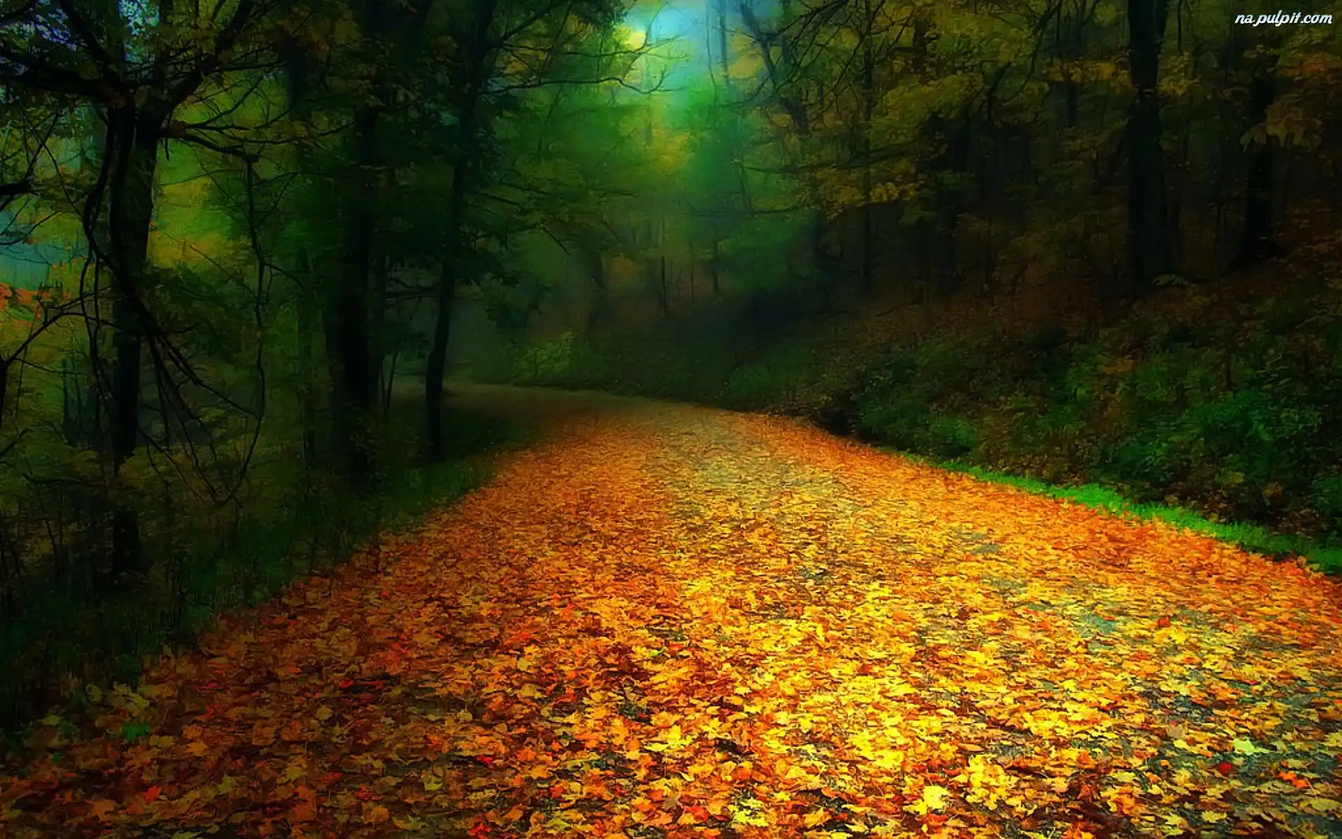 Droga, Jesień, Las Na Pulpit