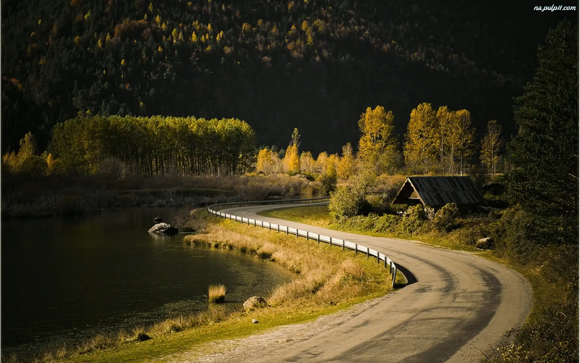 Jesień, Rzeka, Droga, Las Na Pulpit