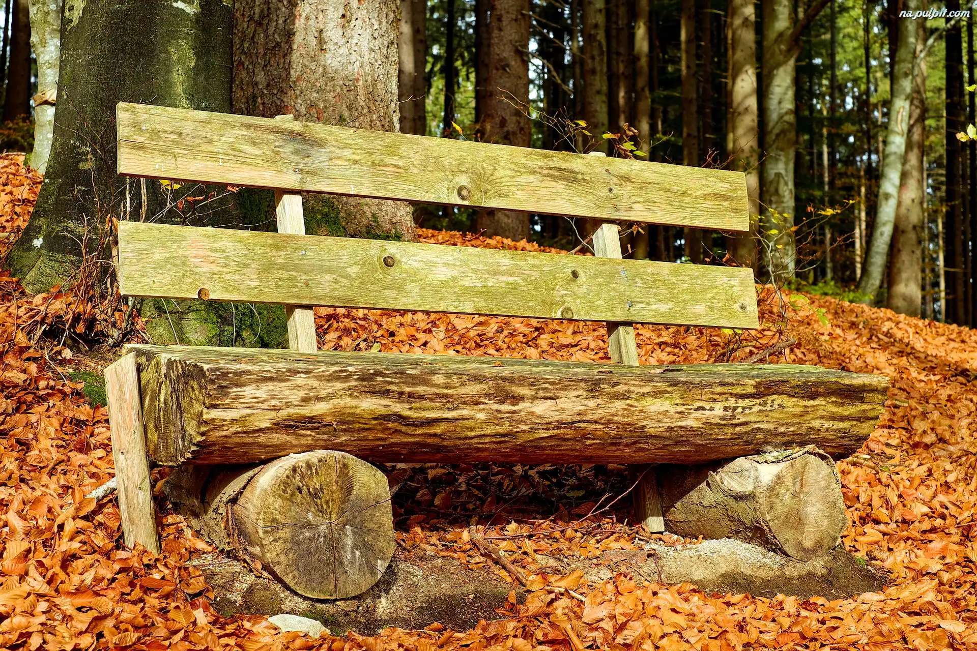 Ławka, Drzewa, Jesień, Liście Na Pulpit