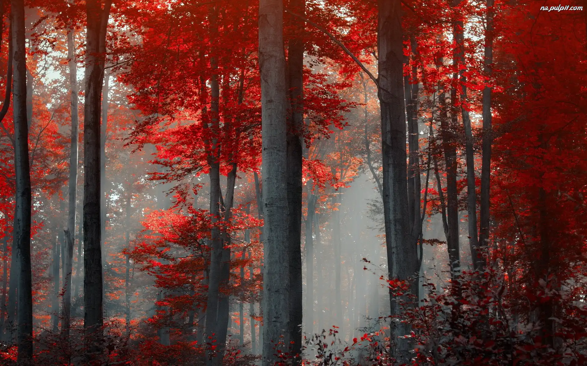 Jesień, Las, Drzewa, Mgła Na Pulpit