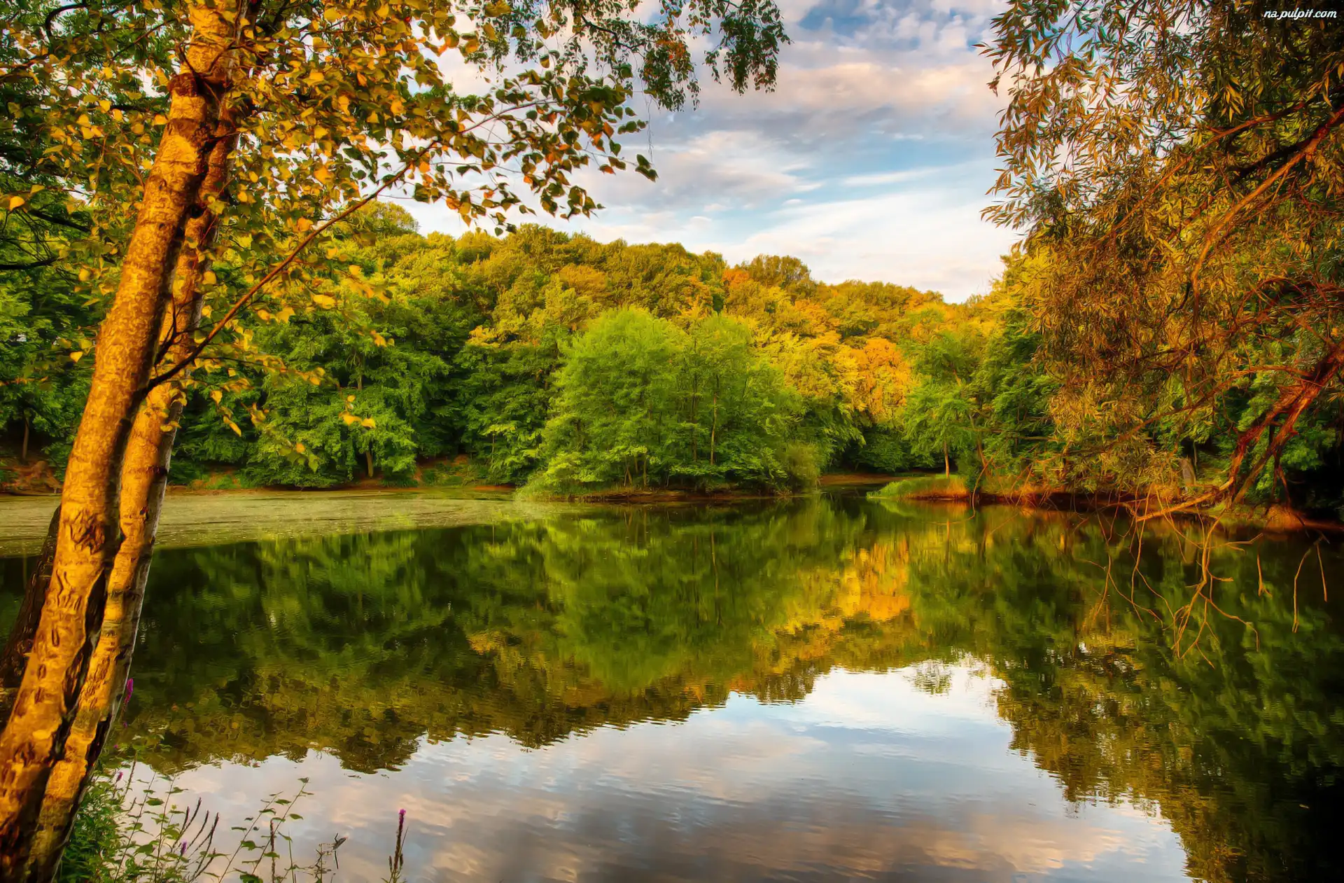 Drzewa, Jesień, Rzeka Na Pulpit