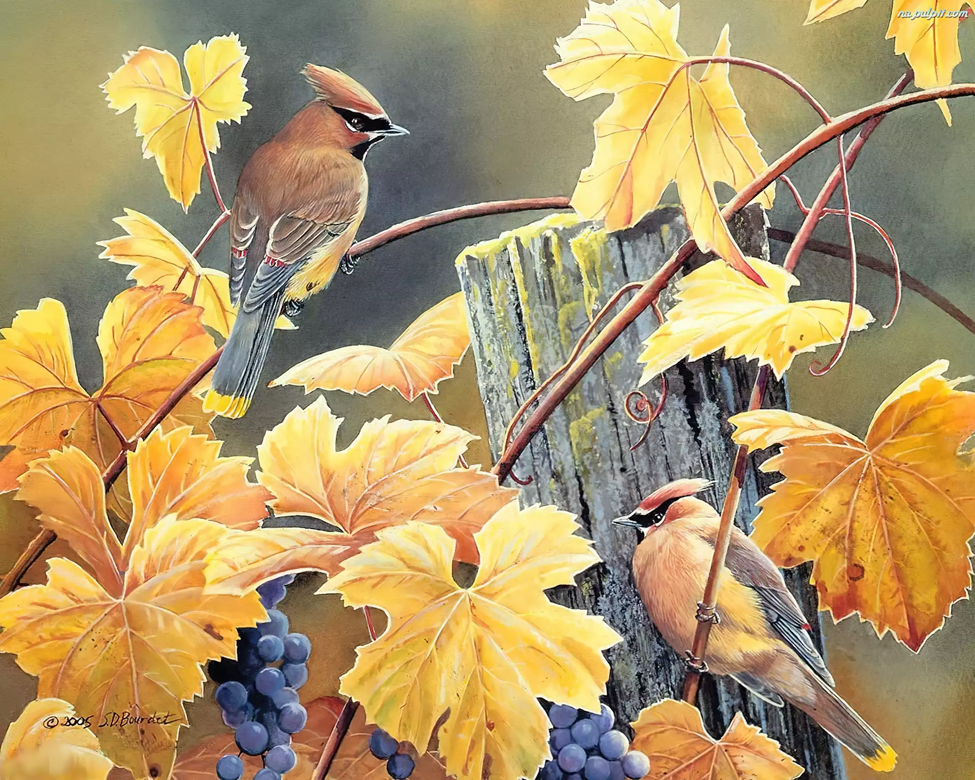 Jesień, Płot, Jemiołuszki, Dwie, Liście Na Pulpit