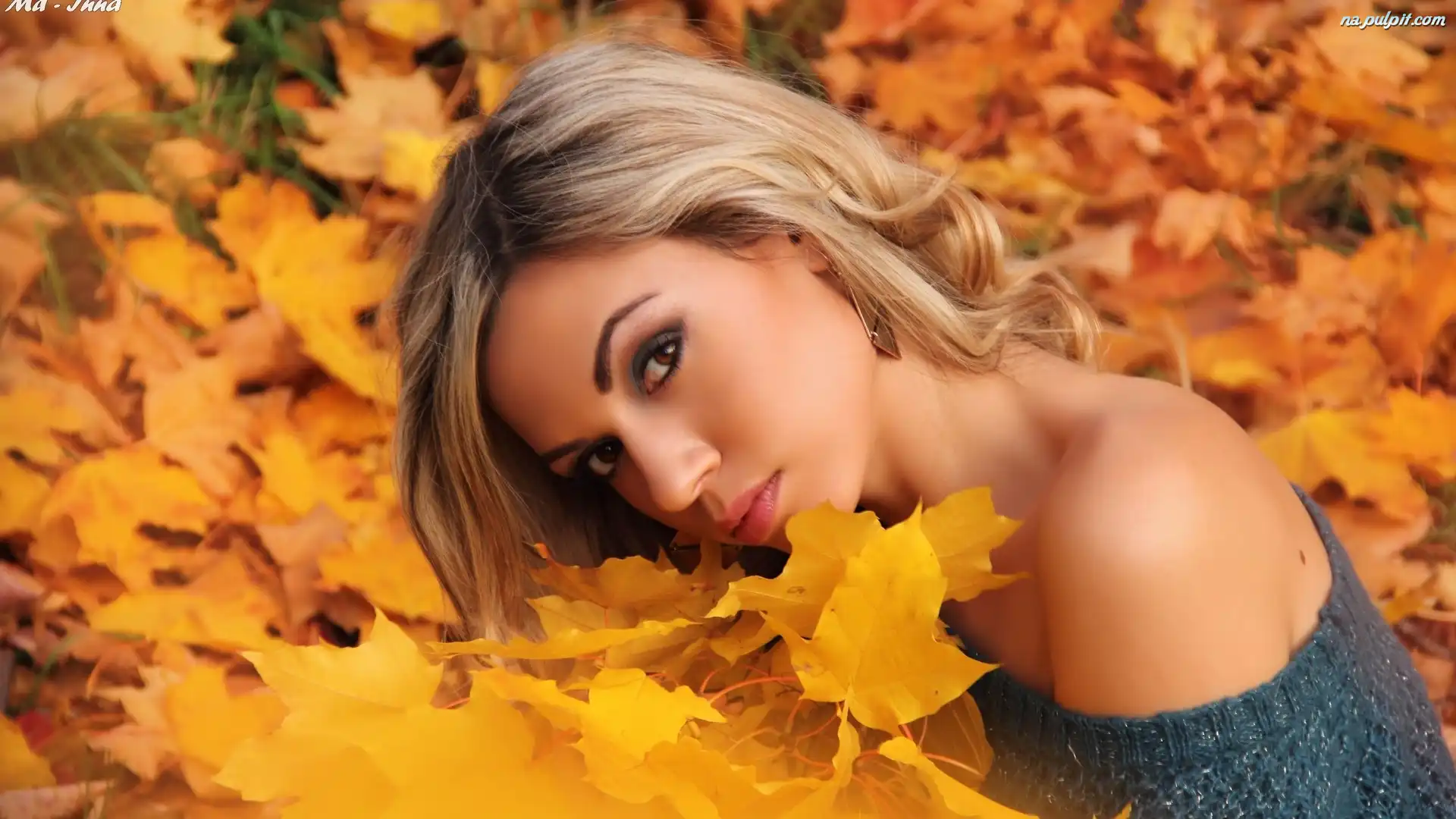 Jesień, Modelka, Blondynka, Dziewczyna, Liście Na Pulpit