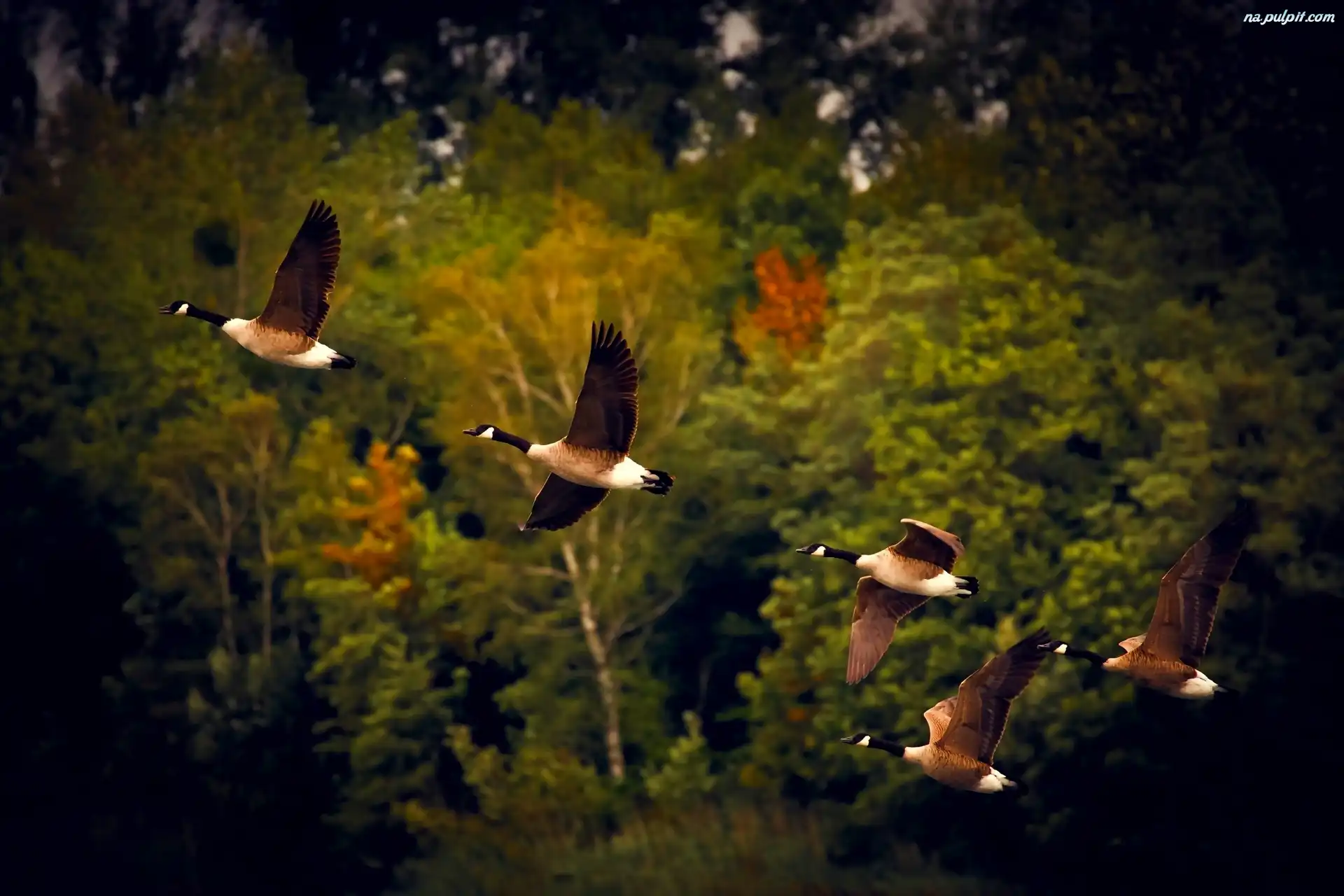 Jesień, Bernikle kanadyjskie, Gęsi, Dzikie, Lot Na Pulpit
