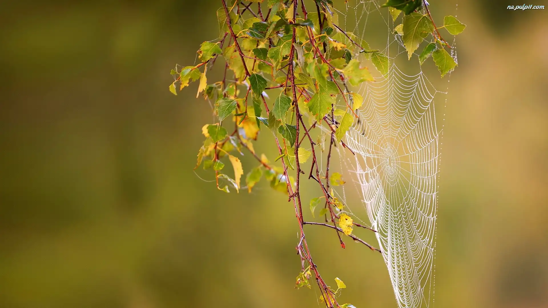 Jesień, Liście, Gałązka, Pajęczyna Na Pulpit