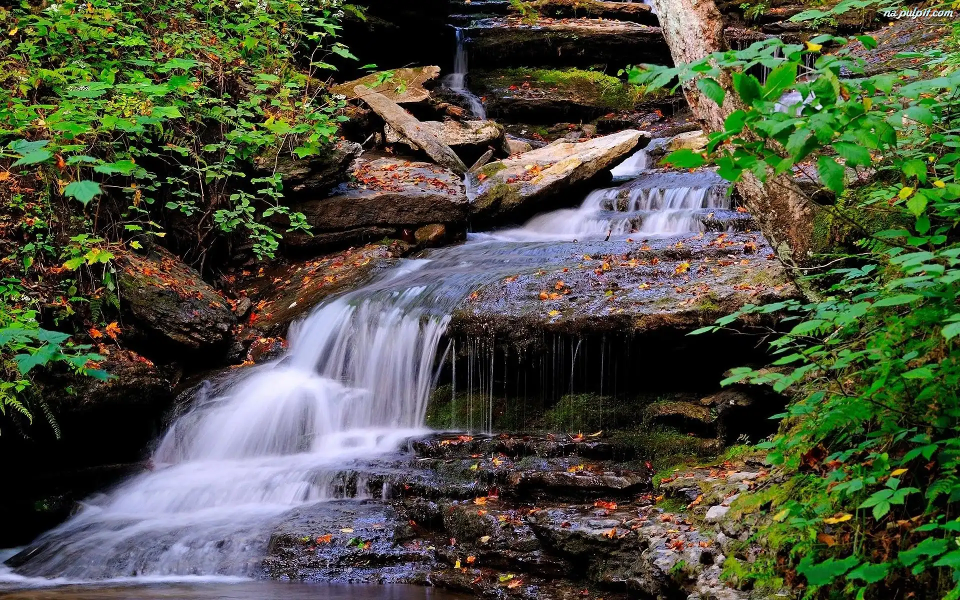 Jesień, Wodospad, Górski, Skały Na Pulpit