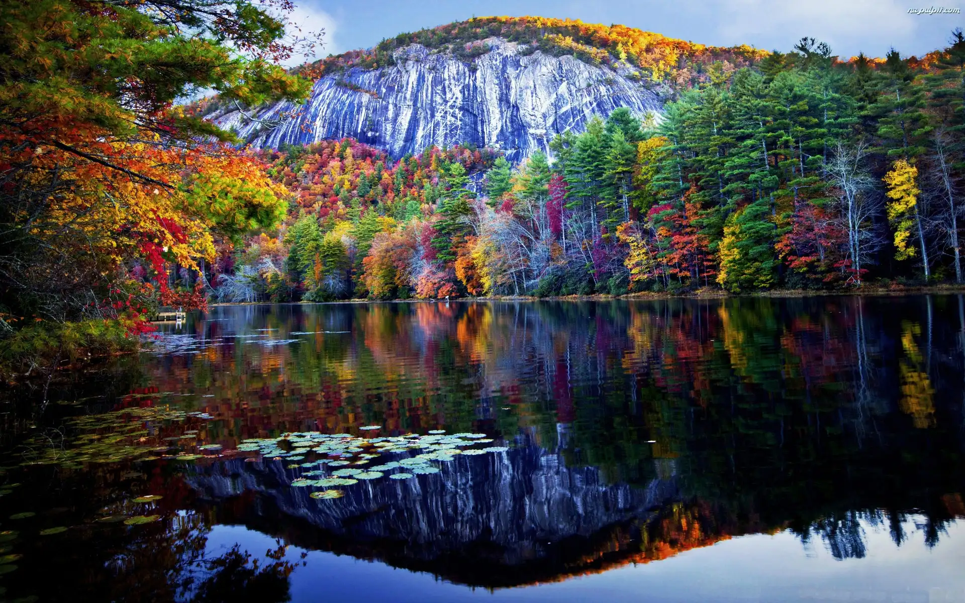 Jesień, Drzewa, Góry, Jezioro Na Pulpit