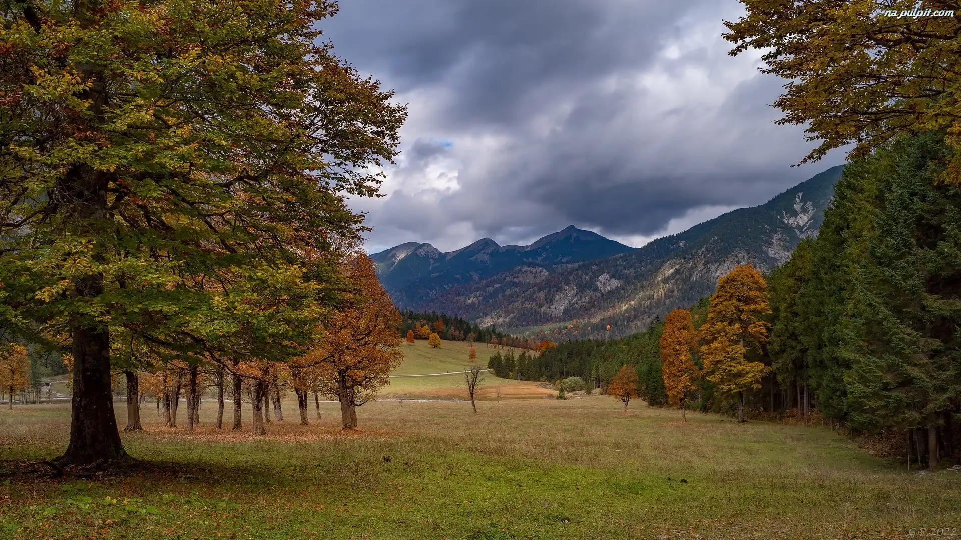 Drzewa, Jesień, Góry, Polana, Kolorowe Na Pulpit