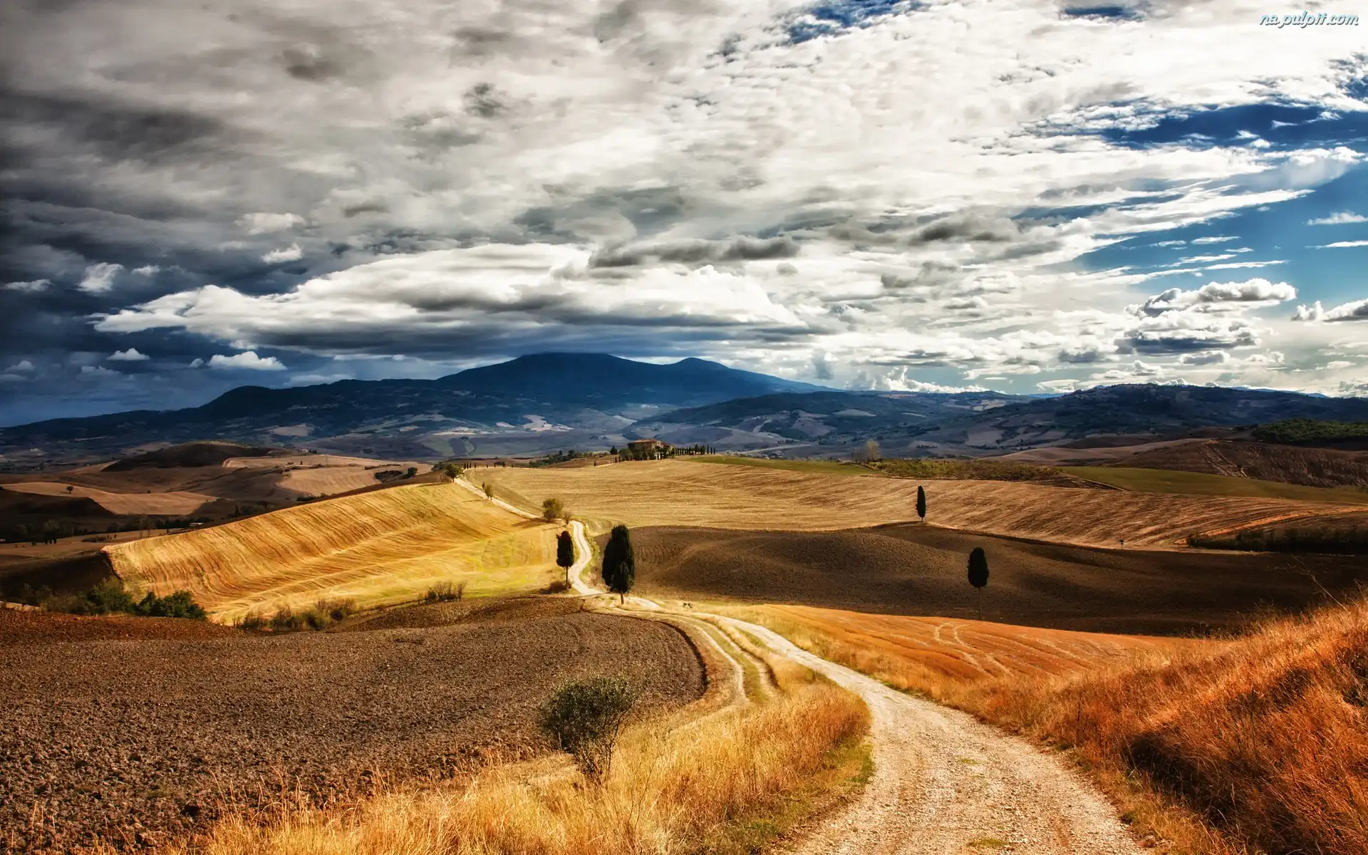 Jesień, Drzewa, Pola, Góry, Droga Na Pulpit