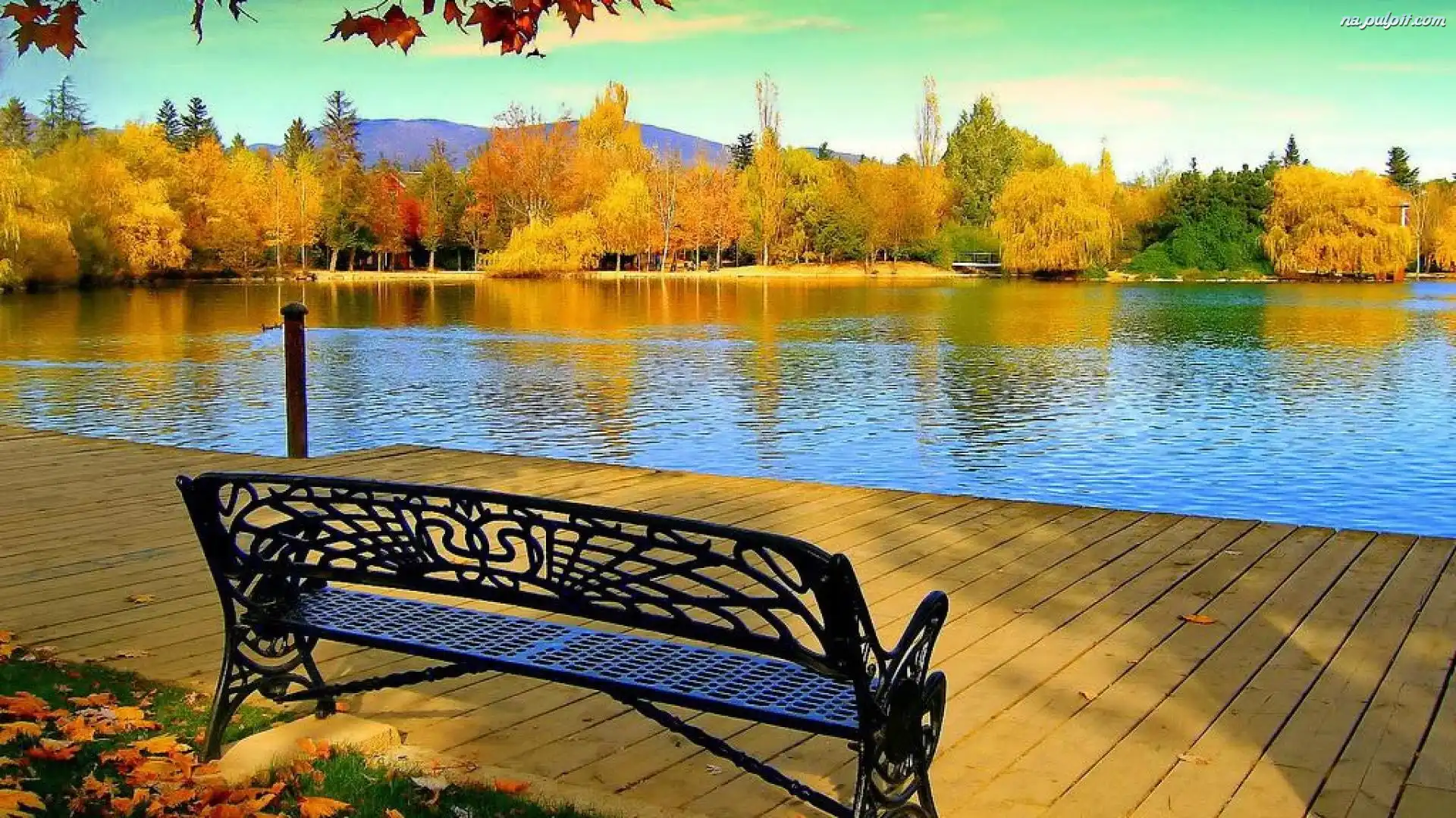 Ławeczka, Jezioro, Jesień, Drzewa Na Pulpit