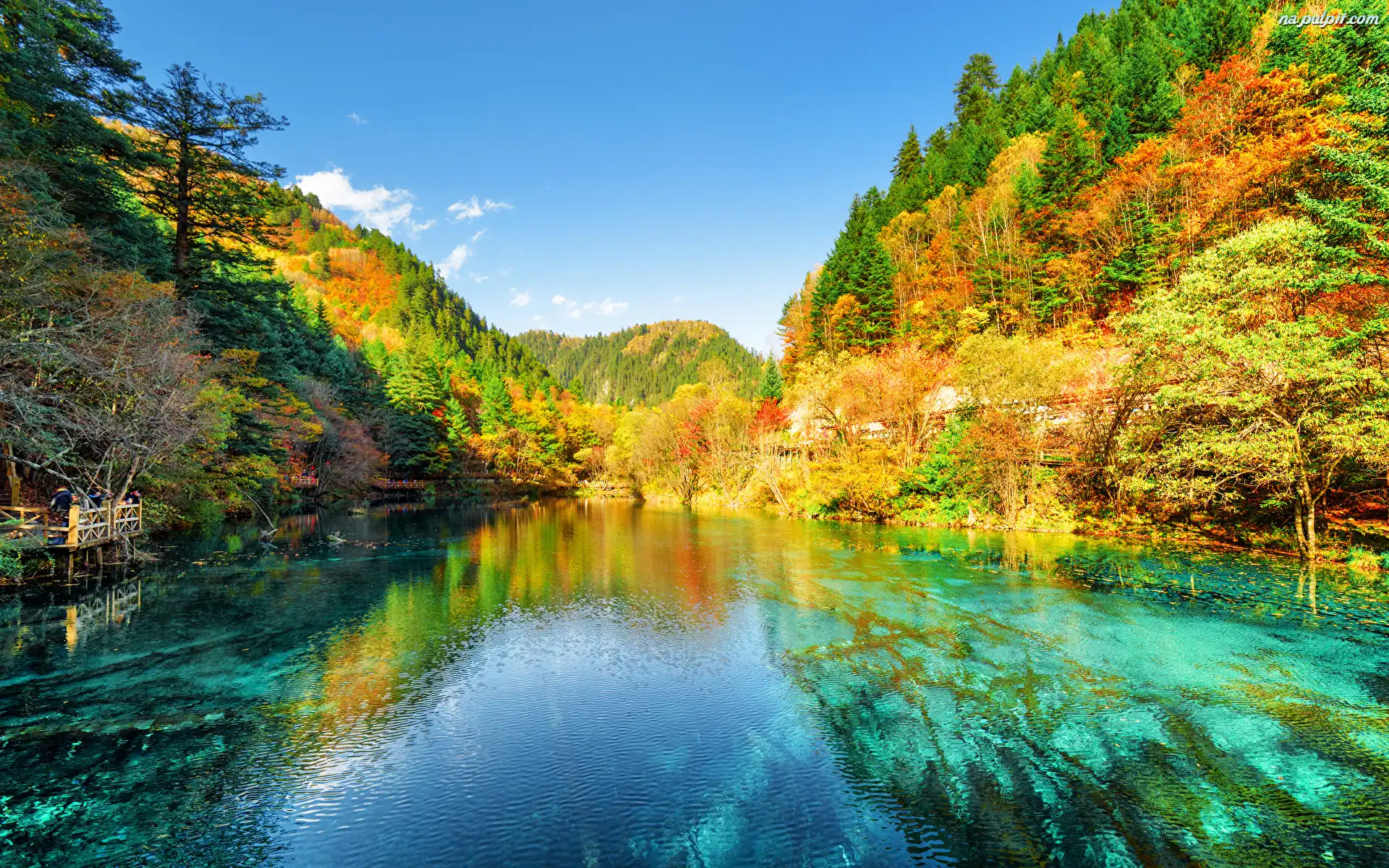Góry, Chiny, Jezioro, Las, Park Narodowy Jiuzhaigou, Jesień Na Pulpit