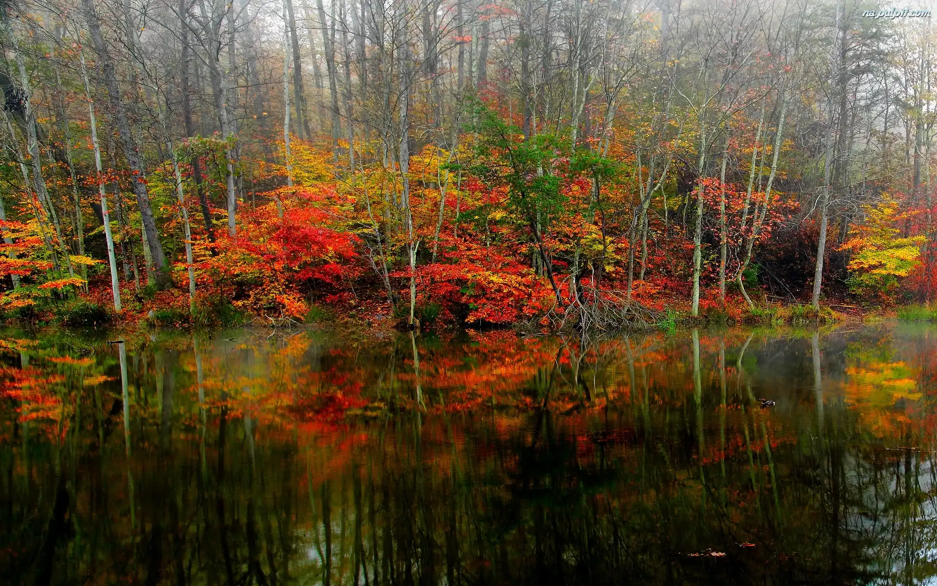 Jezioro, Jesień, Drzewa