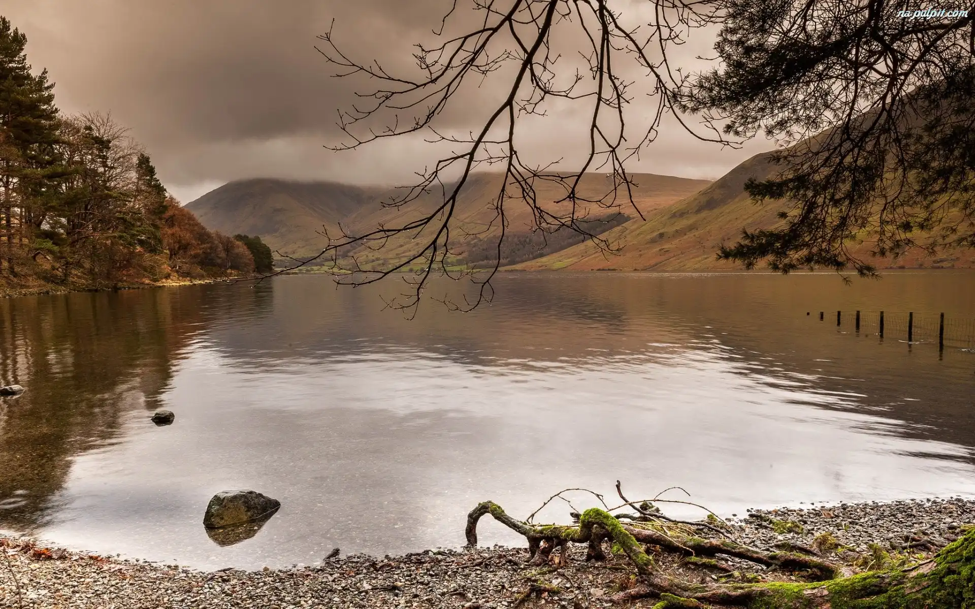 Jesień, Kamienie, Drzewa, Jezioro, Góry Na Pulpit