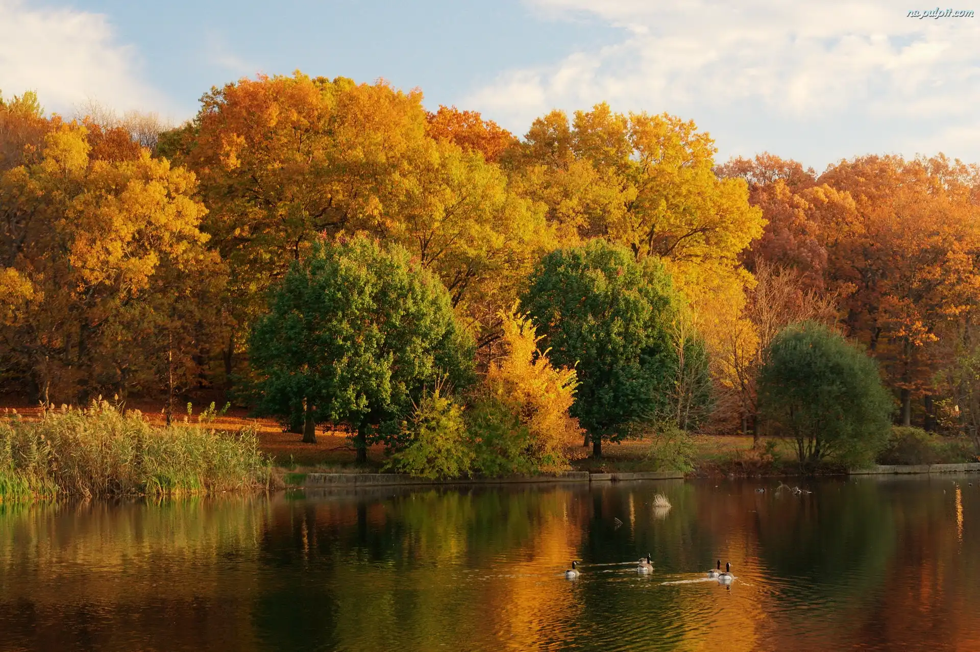 Jesień, Kaczki, Jezioro, Park Na Pulpit