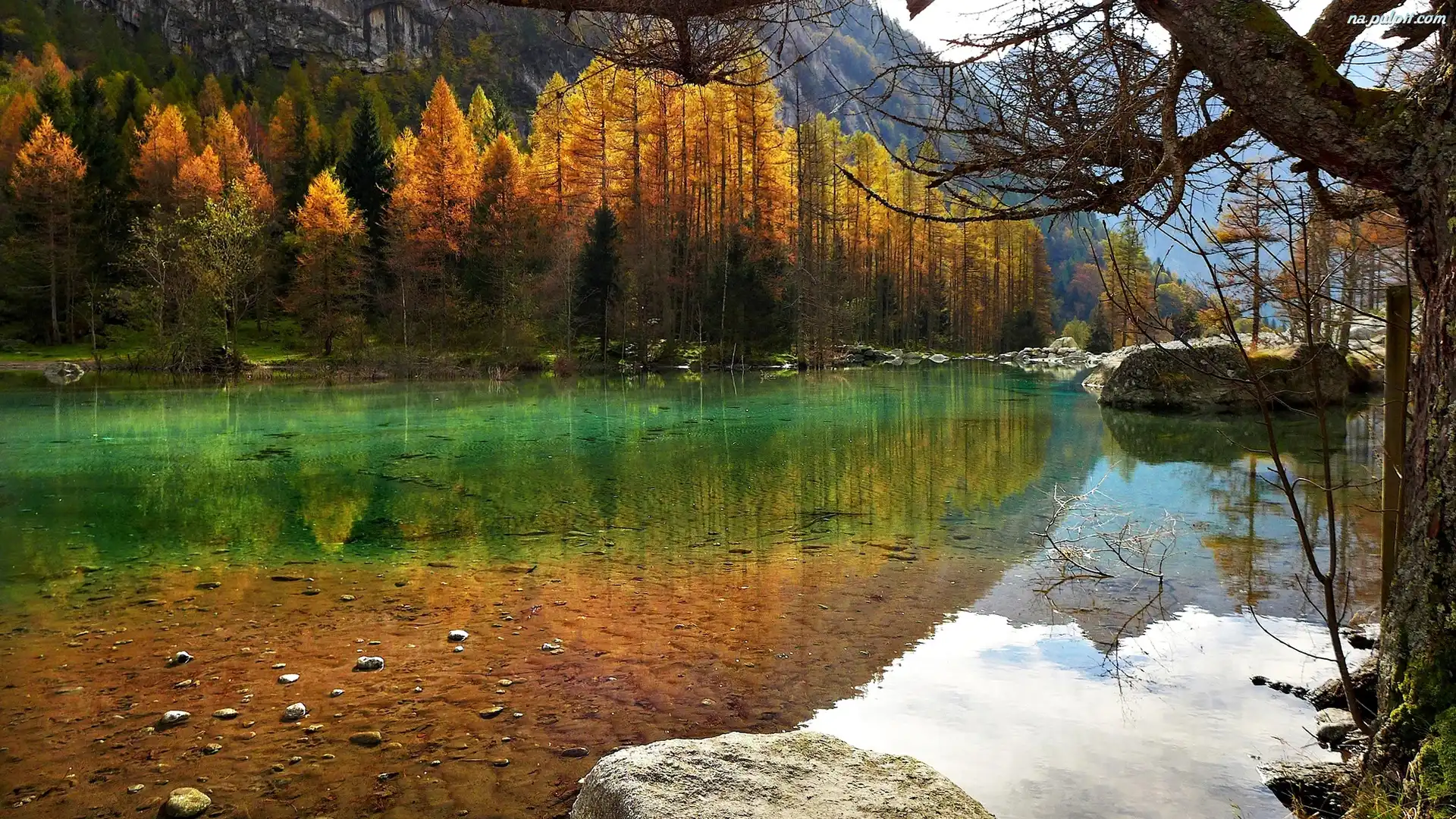 Jesień, Las, Jezioro, Góry Na Pulpit