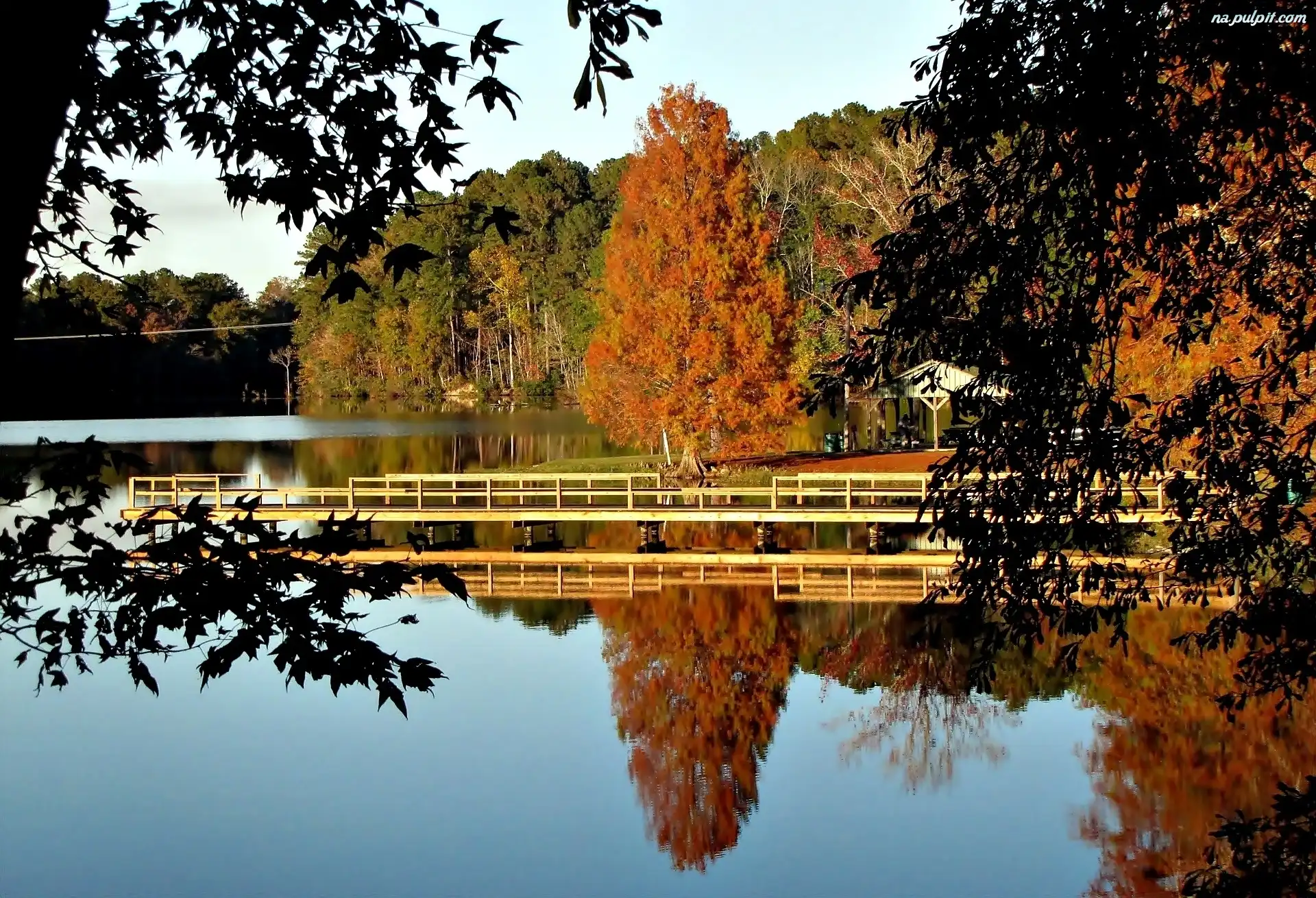 Jesień, Lasy, Jezioro, Pomost Na Pulpit