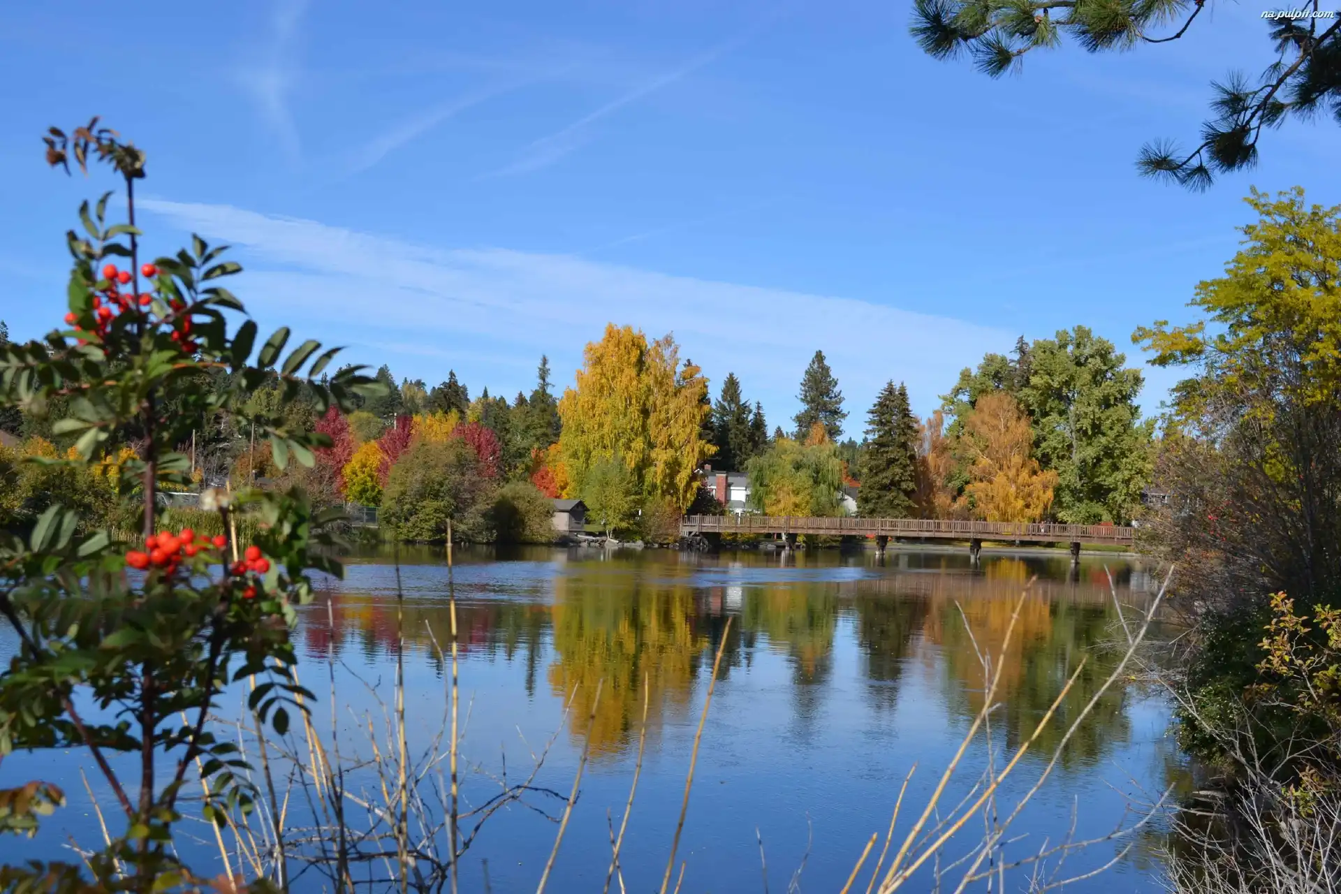 Jesień, Most, Jezioro, Drzewa Na Pulpit