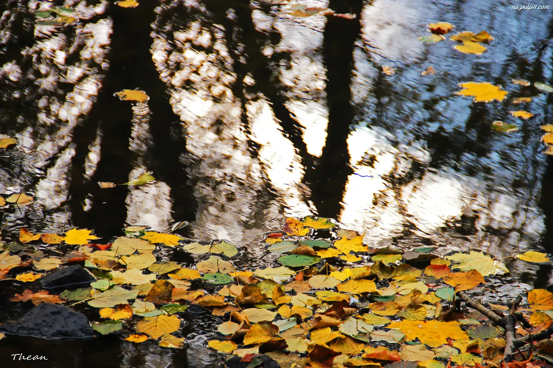 Jesień, Żółte, Odbicie, Jezioro, Liście Na Pulpit
