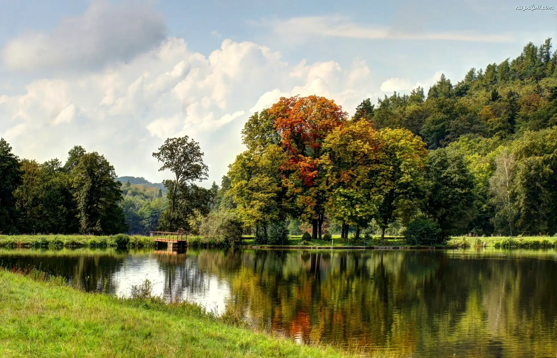 Jesień, Pomost, Jezioro, Lasy Na Pulpit