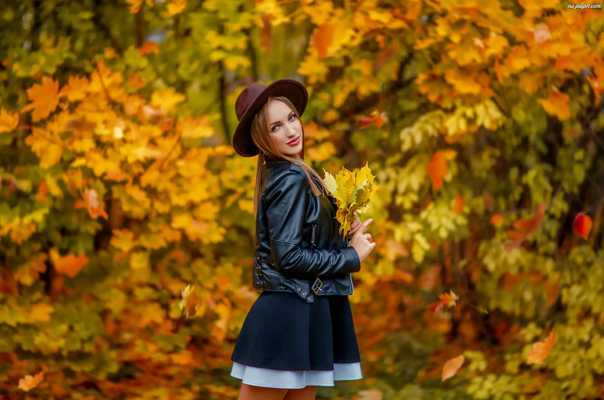 Jesień, Bukiecik, Kapelusz, Kobieta, Liści