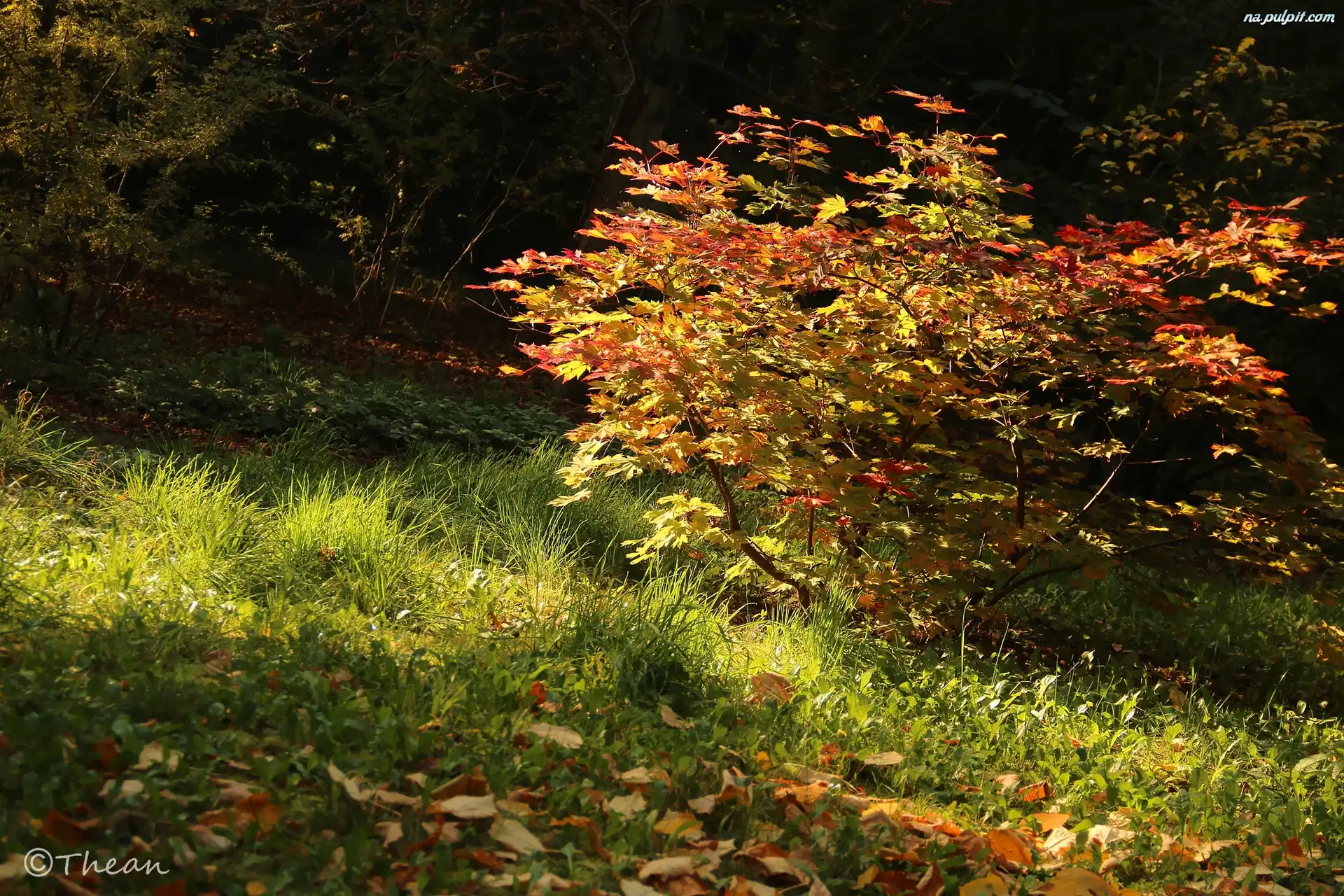 Jesień, Drzewko, Liście, Kolorowe, Trawa Na Pulpit