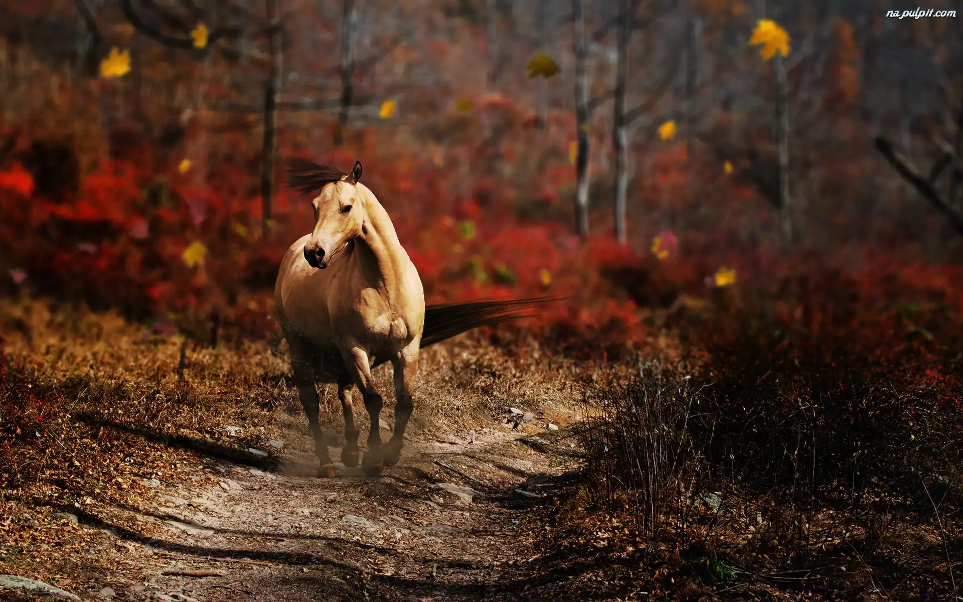 Jesień, Droga, Koń, Drzewa Na Pulpit