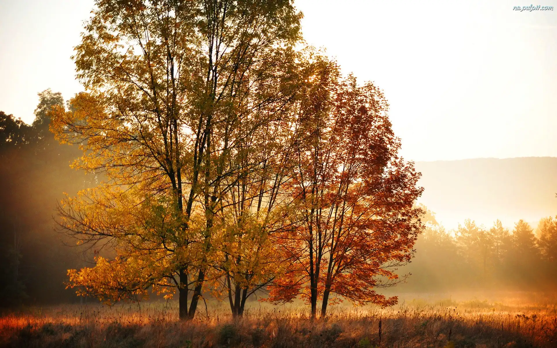 Jesień, Przebijające, Lasy, Ląki, Światło