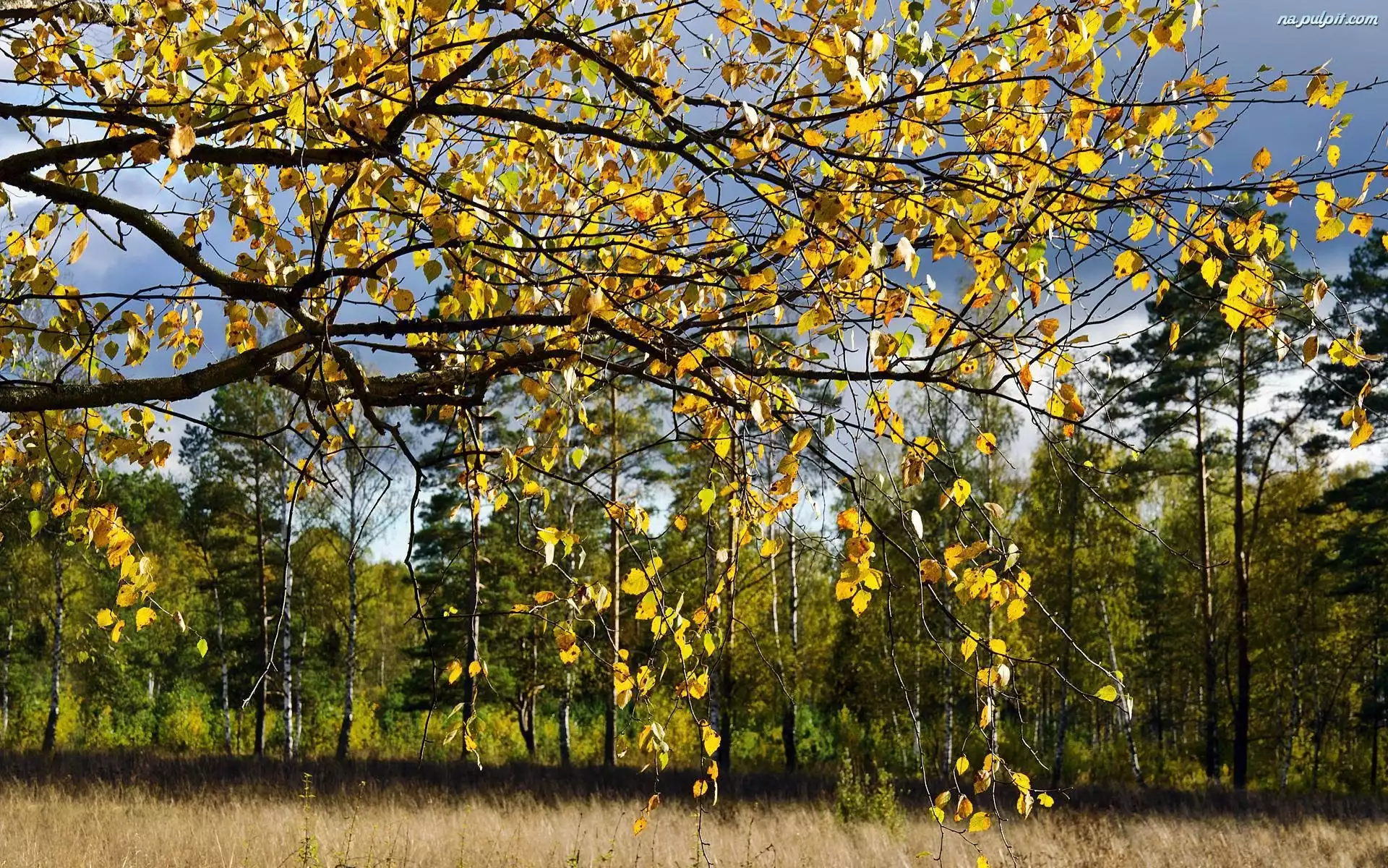 Jesień, Brzozowy, Las, Liście Na Pulpit