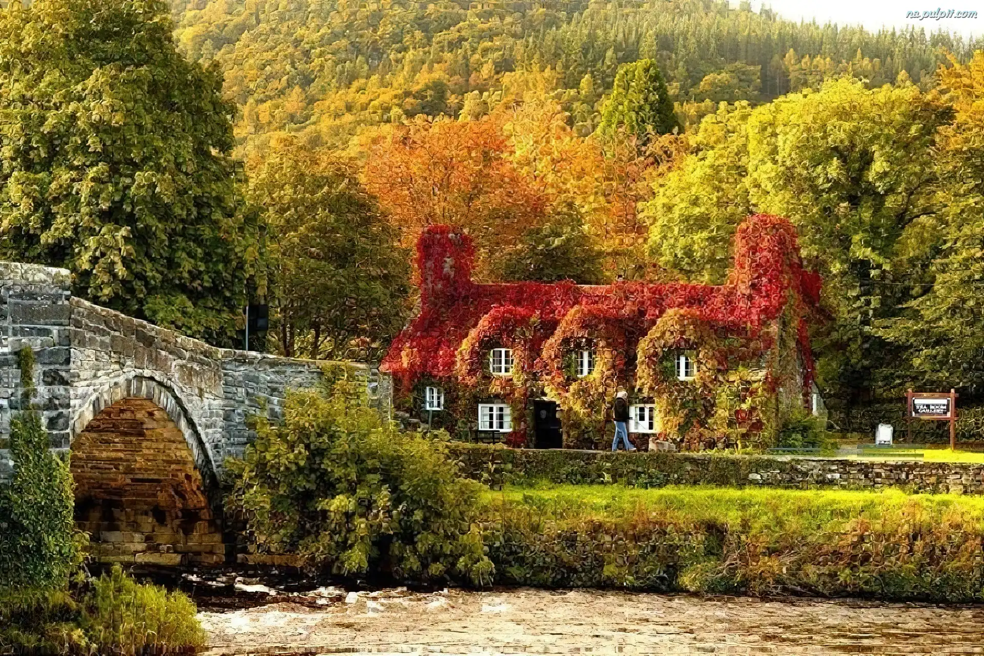 Jesień, Dom, Las, Most