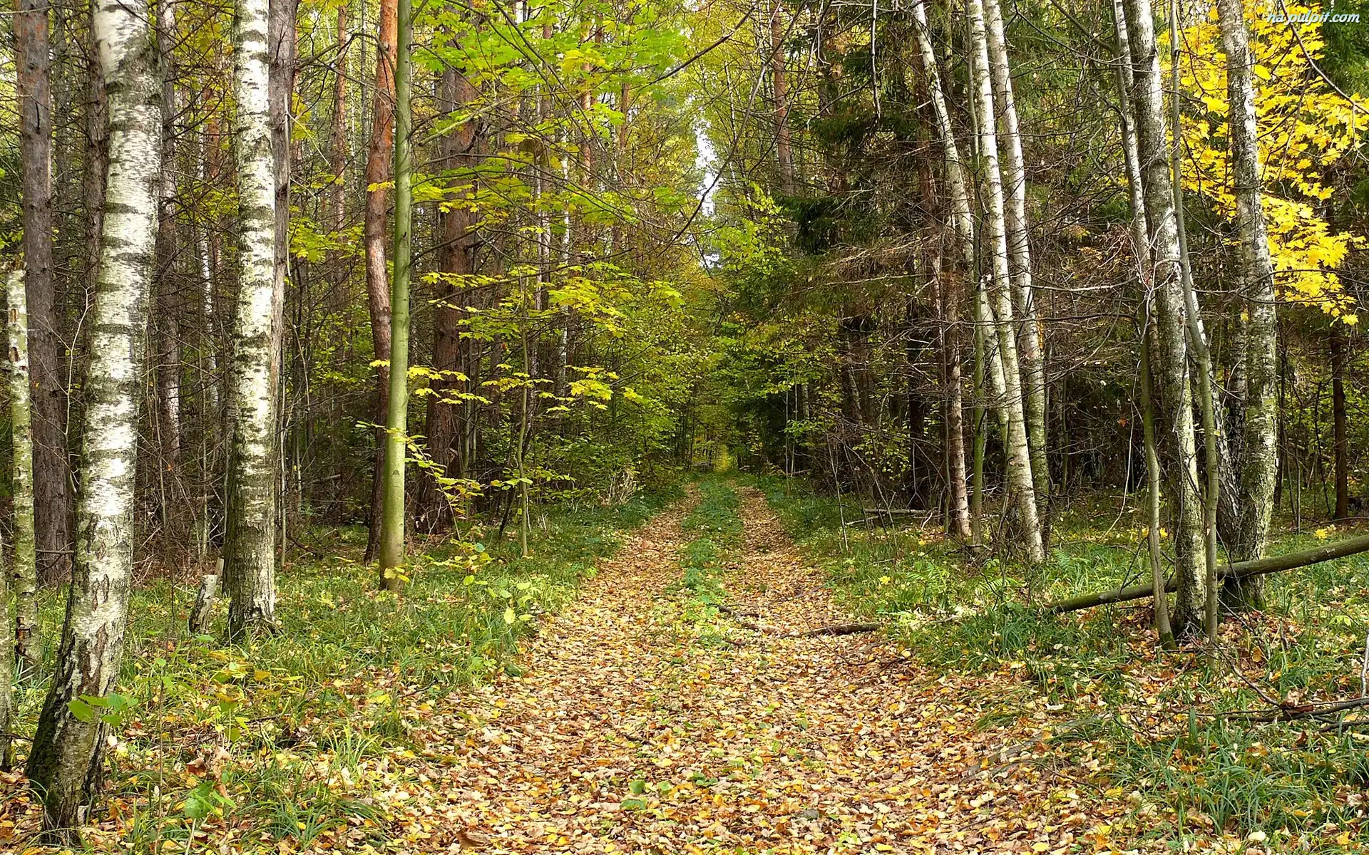Jesień, Brzozy, Droga, Las, Liście Na Pulpit