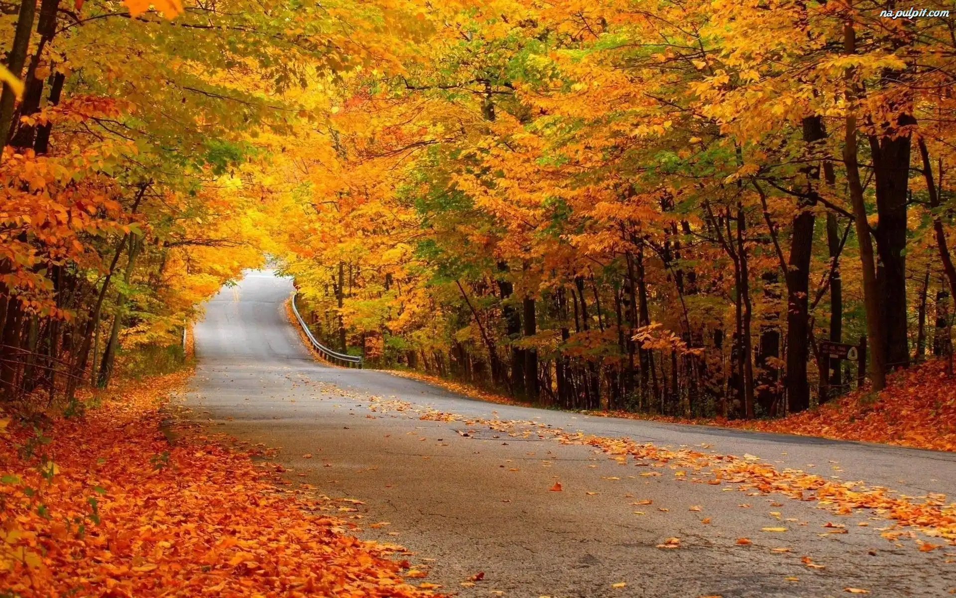Jesień, Droga, Las, Drzewa Na Pulpit