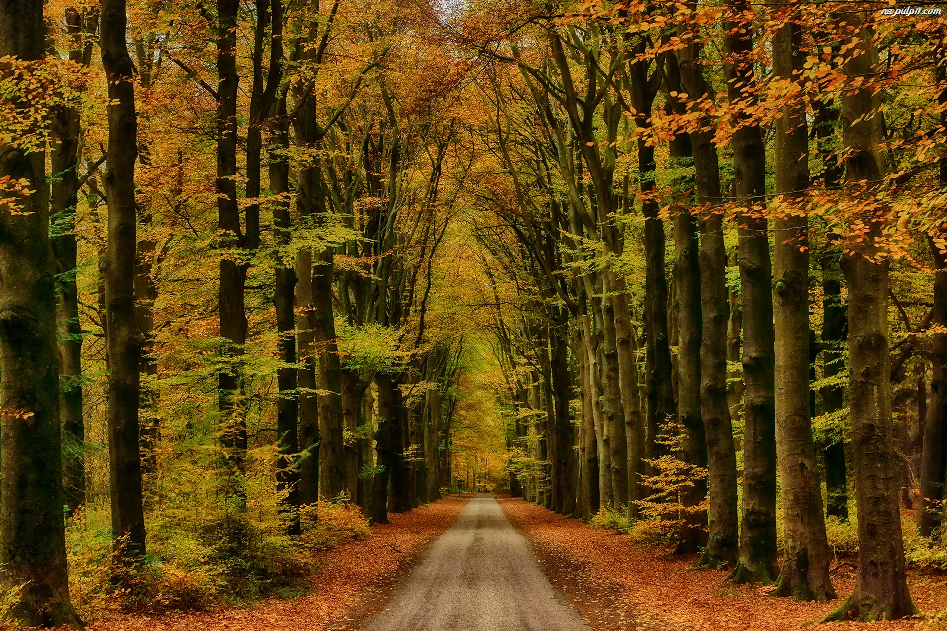 Jesień, Droga, Las, Drzewa Na Pulpit
