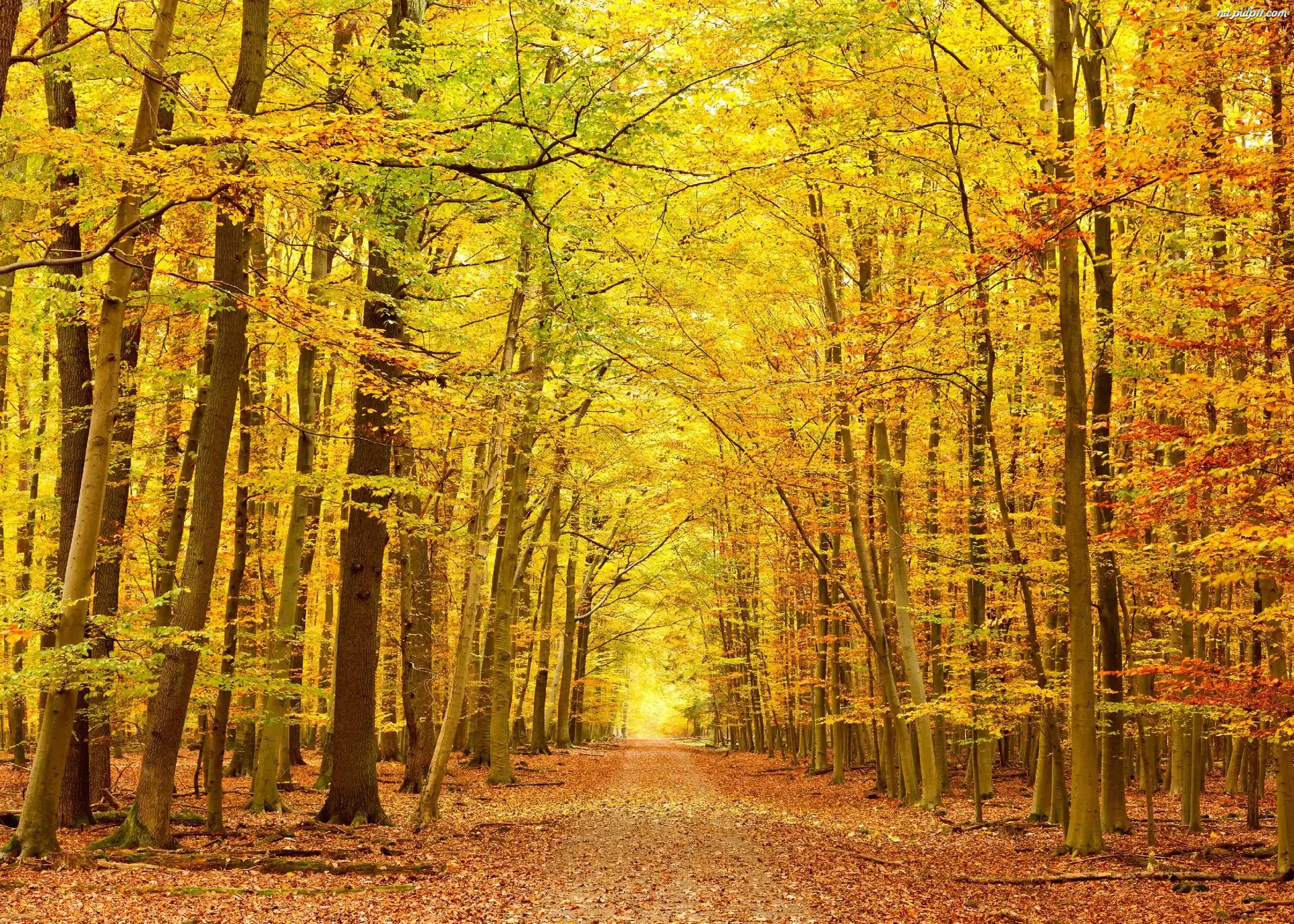 Jesień, Droga, Las, Liście Na Pulpit