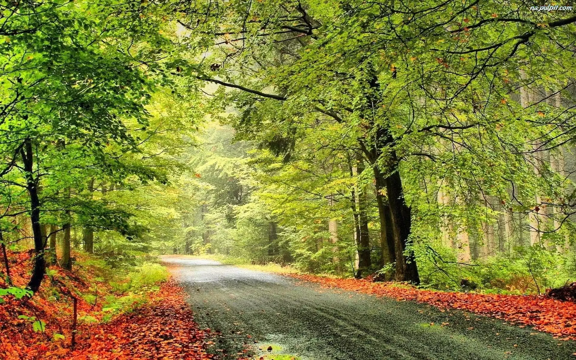 Jesień, Droga, Las, Liście Na Pulpit