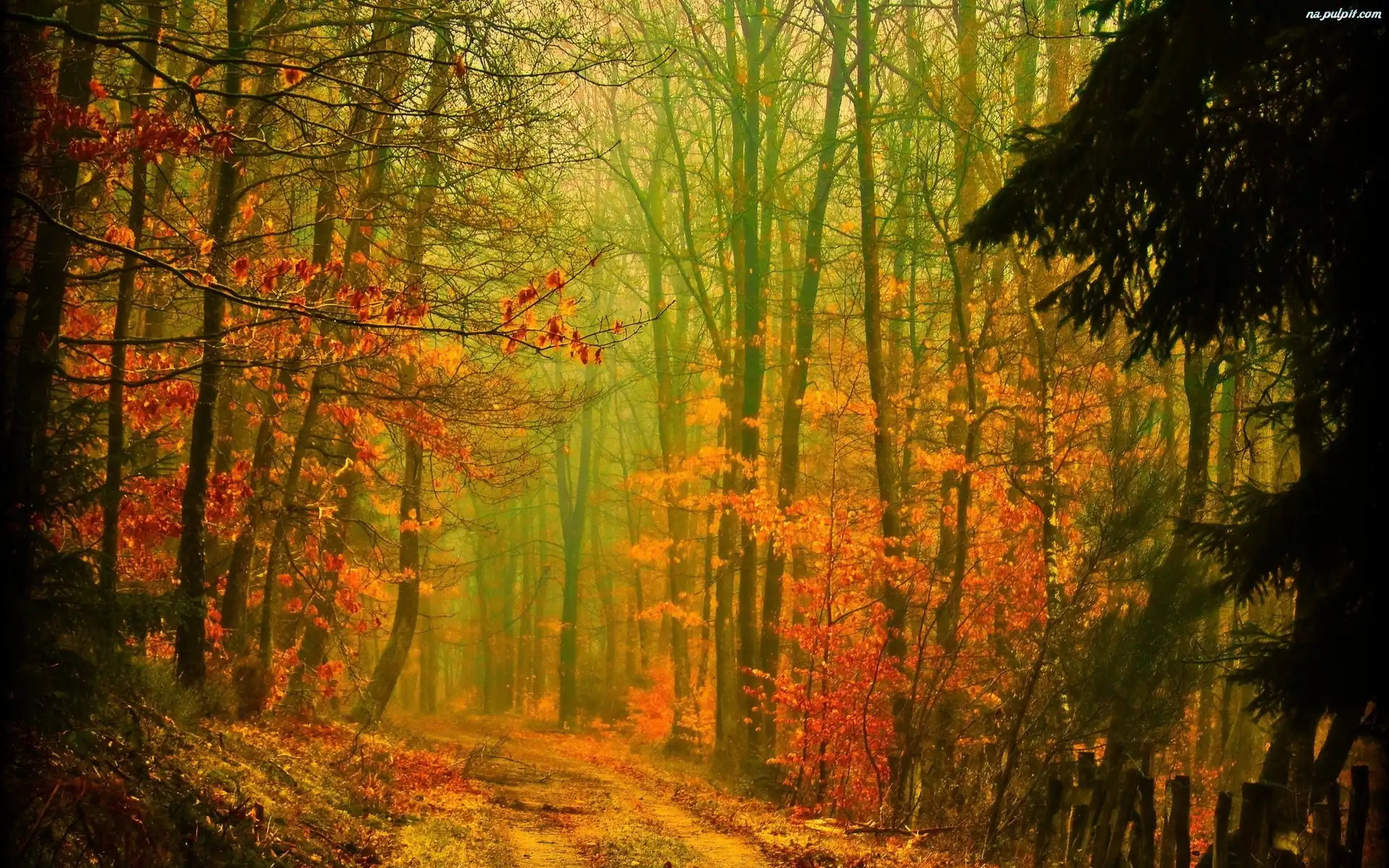 Jesień, Przebijające, Droga, Las, Światło Na Pulpit