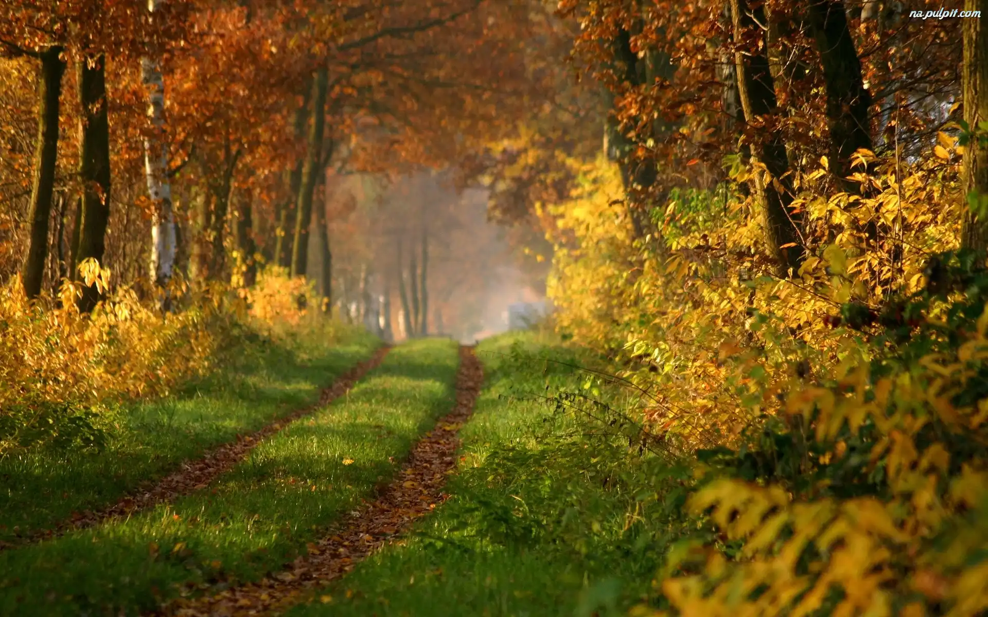 Jesień, Przebijające, Droga, Las, Światło Na Pulpit