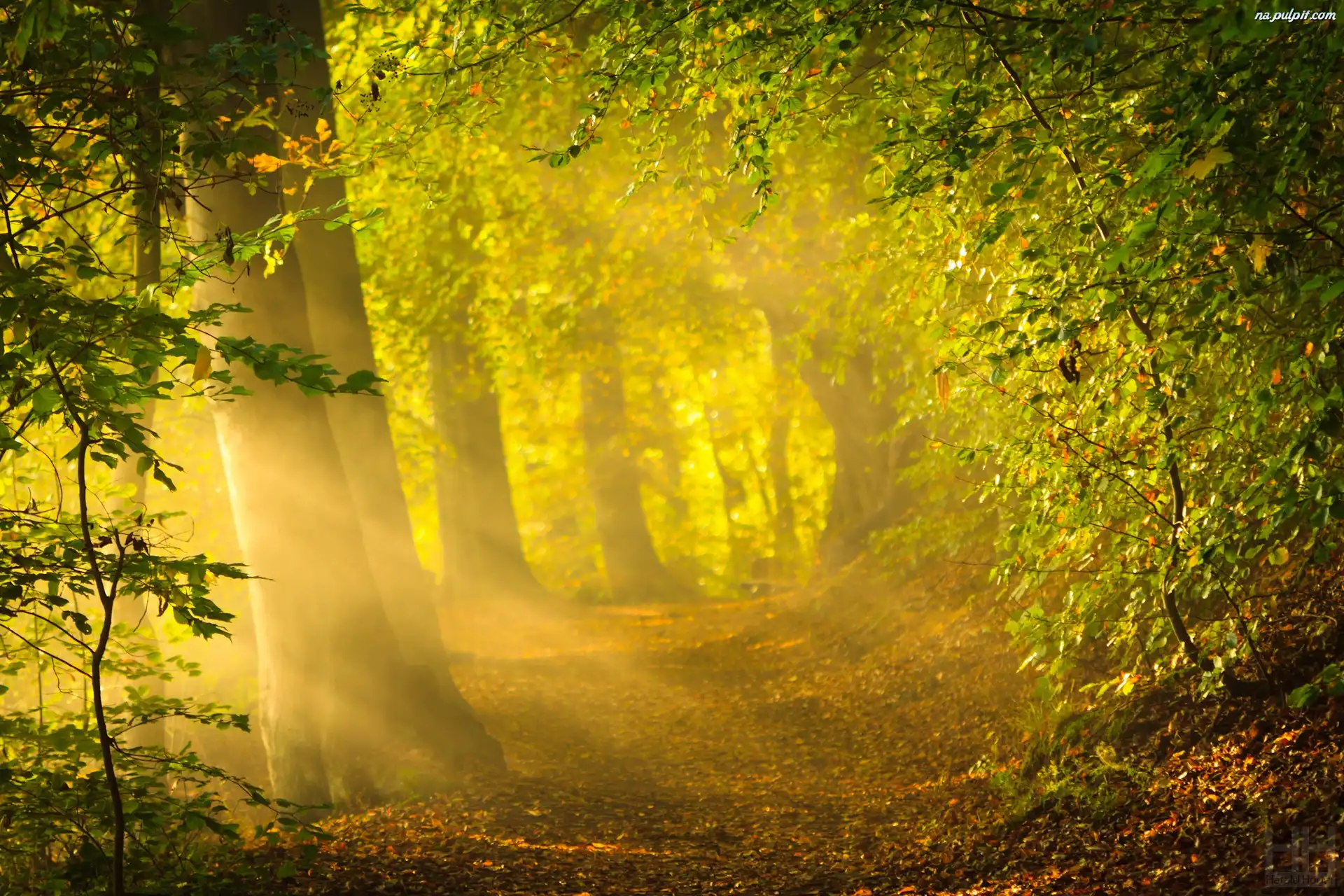 Jesień, Przebijające, Drzewa, Las, Światło Na Pulpit