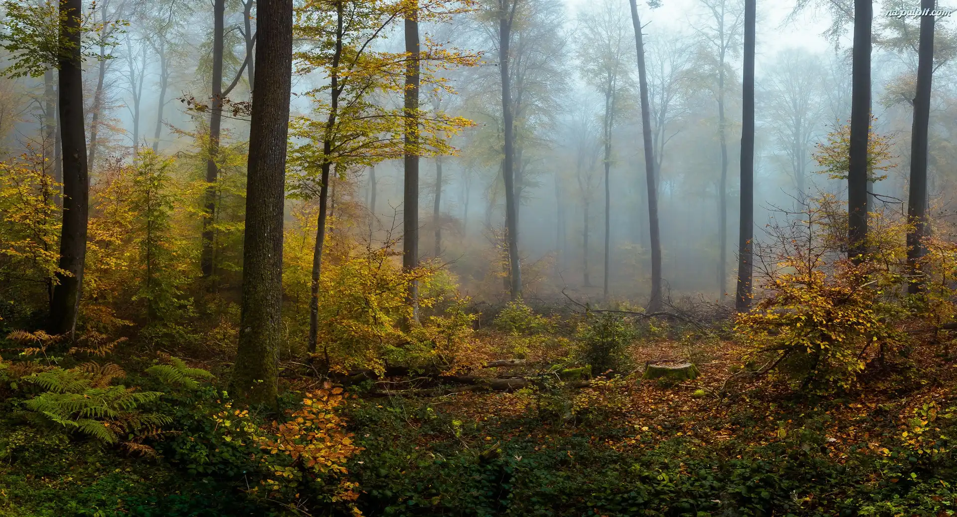 Jesień, Rośliny, Drzewa, Las, Mgła Na Pulpit